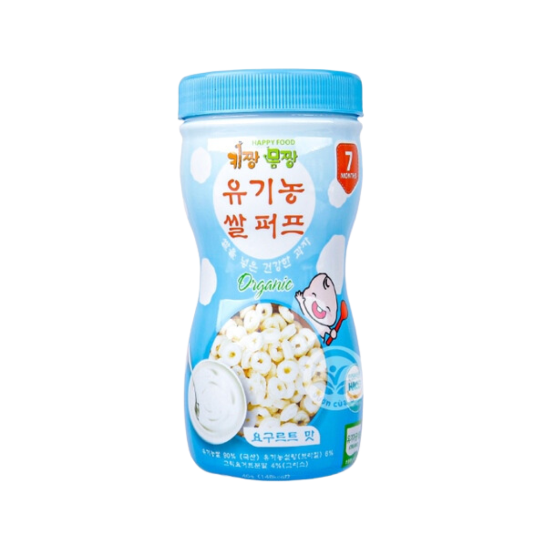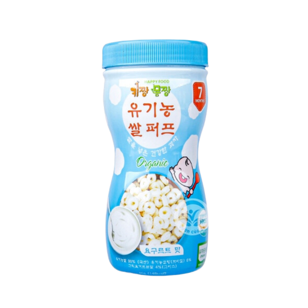 - Bánh gạo organic Happy Food vị yoghurt lọ 40g phù hợp với trẻ từ 7 tháng tuổi trở lên, không chứa chất bảo quản và phẩm màu, đảm bảo an toàn cho bé.