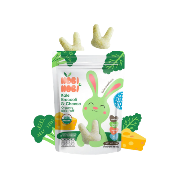 Sản phẩm Bánh Gạo Ăn Dặm Hữu Cơ Nobi Nobi Vị Cải Xoăn, Súp Lơ & Phô Mai 15g là một lựa chọn dinh dưỡng dành riêng cho bé từ 8 tháng tuổi trở lên.