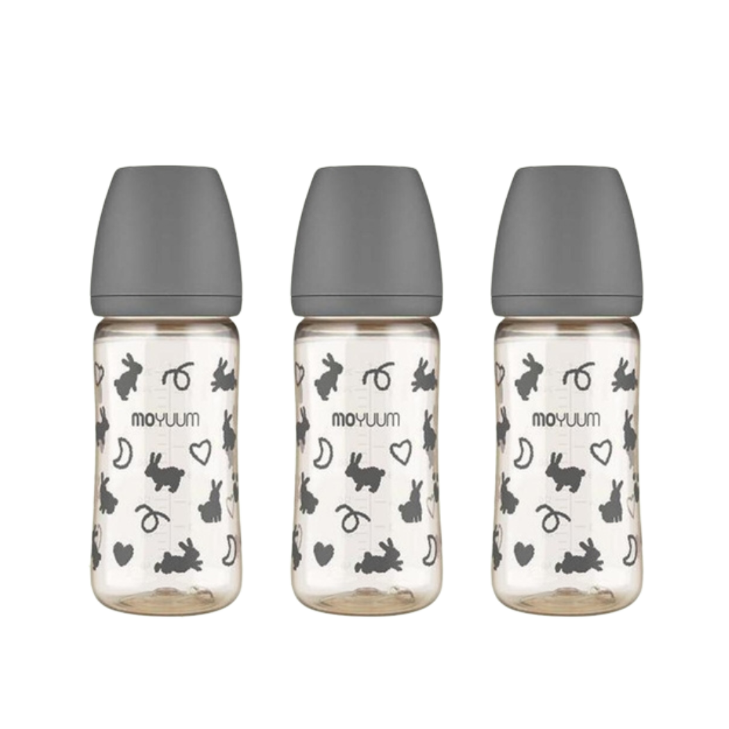 Bình sữa Moyuum họa tiết xám 270ml chính hãng, an toàn cho bé