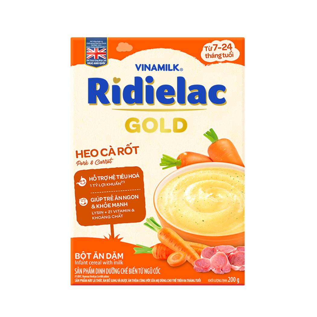 Thành phần và ưu điểm bột ăn dặm Ridielac Gold heo cà rốt