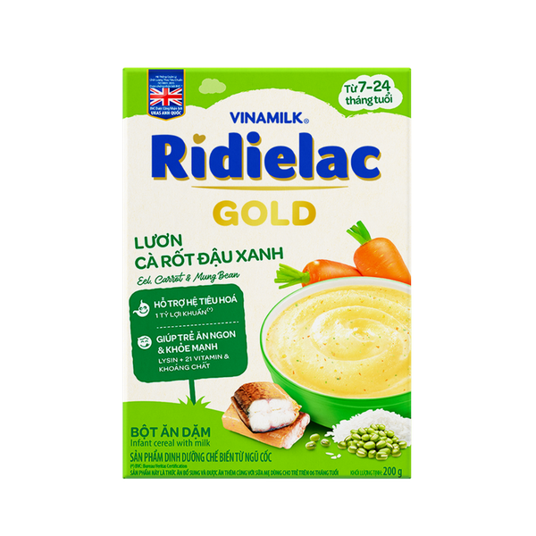 Bột ăn dặm Ridielac Gold Lươn cà rốt đậu xanh 200g (7 - 24 tháng)