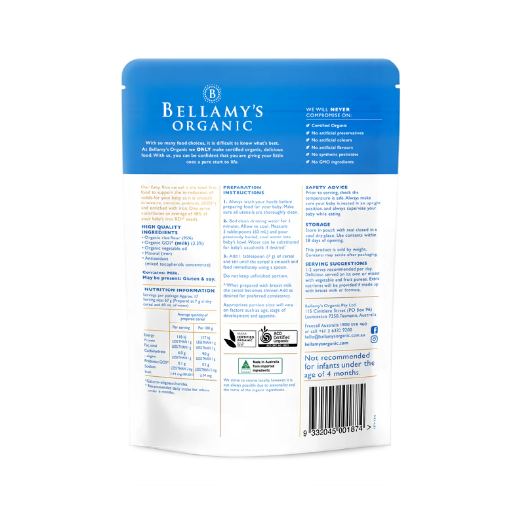 Bột ăn dặm Bellamy's Organic 125g cho bé từ 4 tháng tuổi