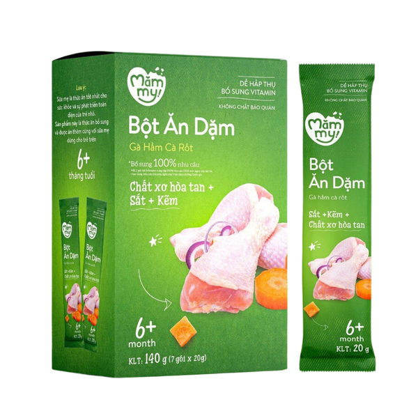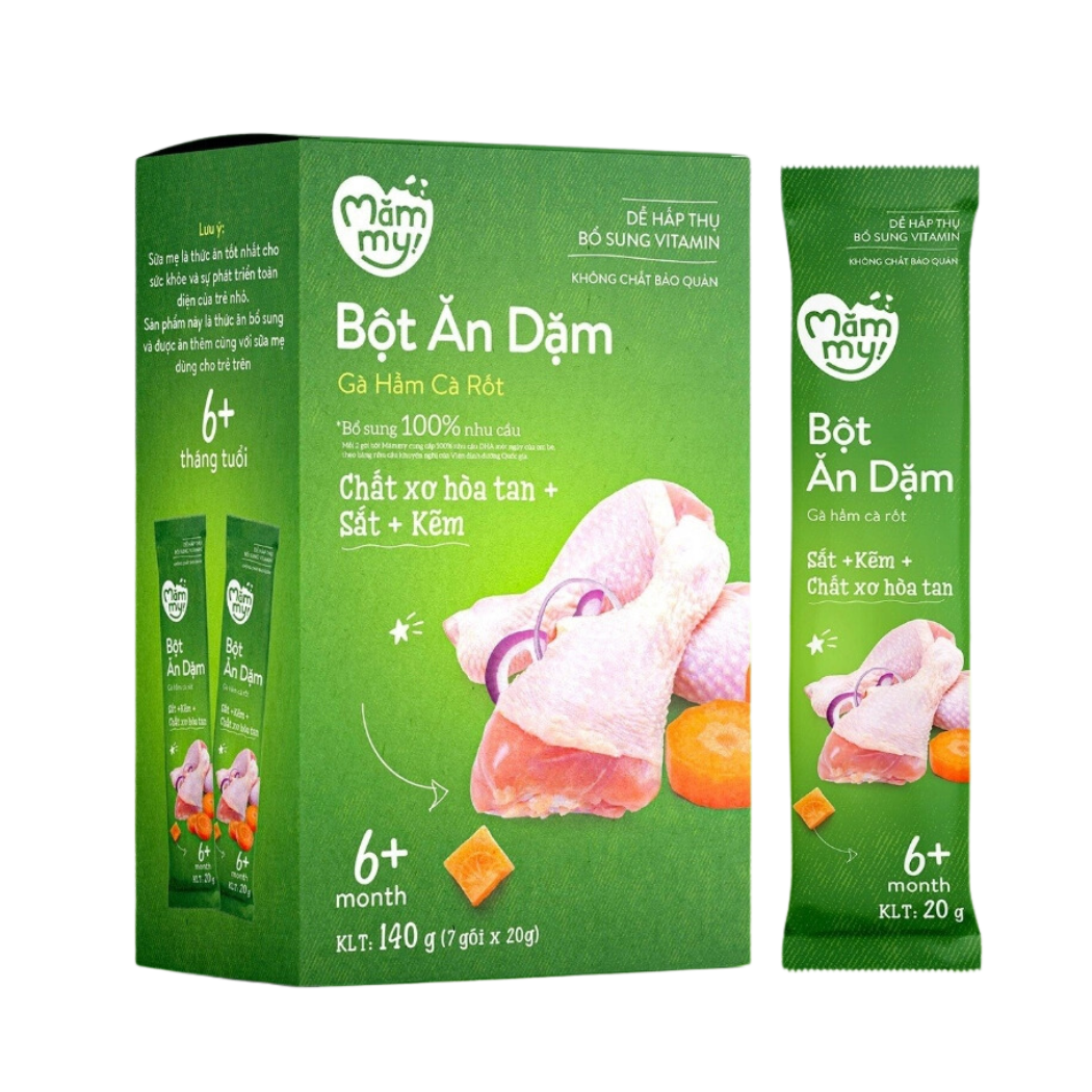 Bột ăn dặm Mămmy gà hầm, cà rốt 140g - hỗ trợ mẹ trong hành trình ăn dặm của bé