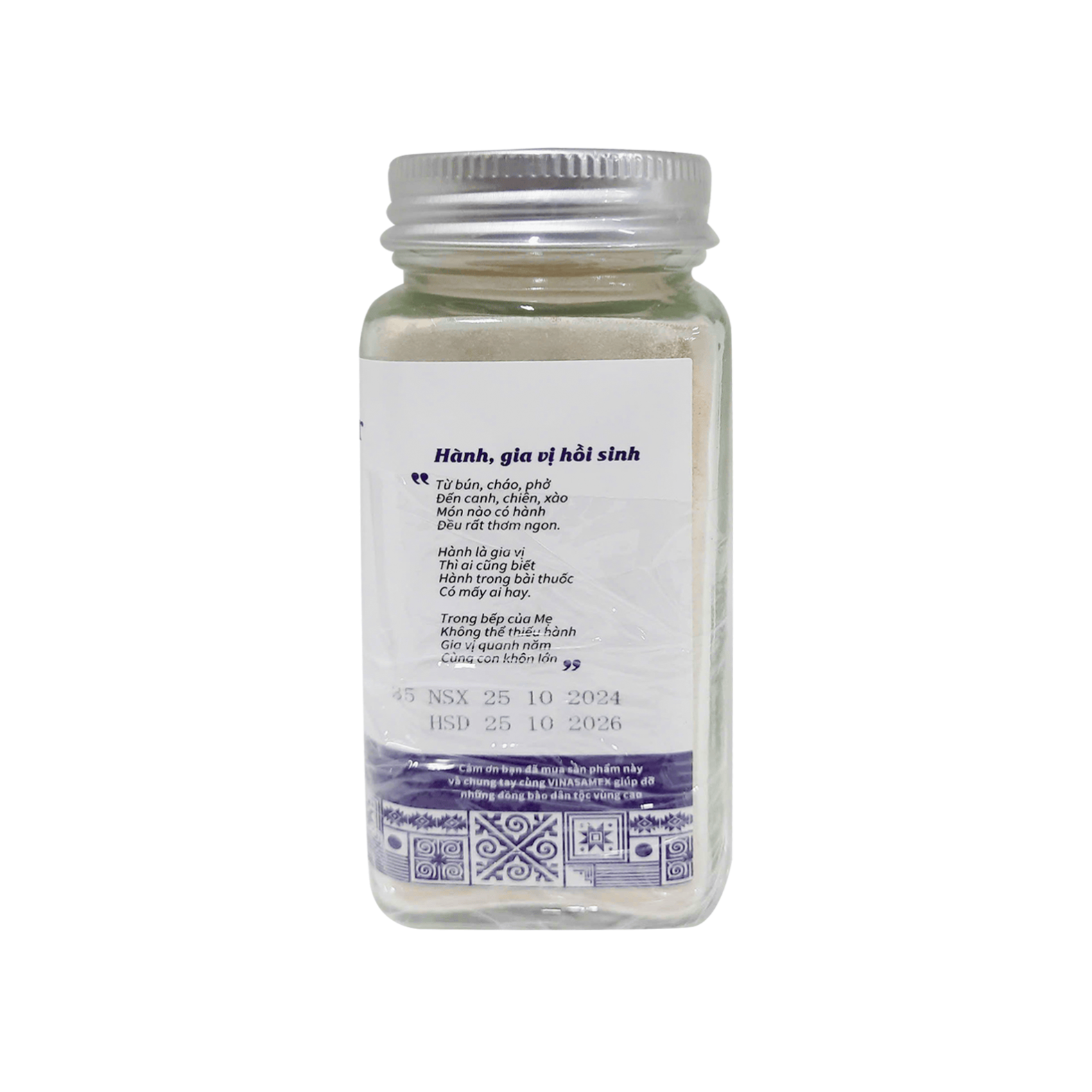 Thành phần: 100% Bột hành hữu cơ Việt Nam. Sử dụng giống hành ta được trồng tại vùng núi phía Bắc, là giống hành cho củ nhỏ, nhiều tép hành, vỏ dày, cho mùi thơm đặc trưng và vị cay nhẹ.