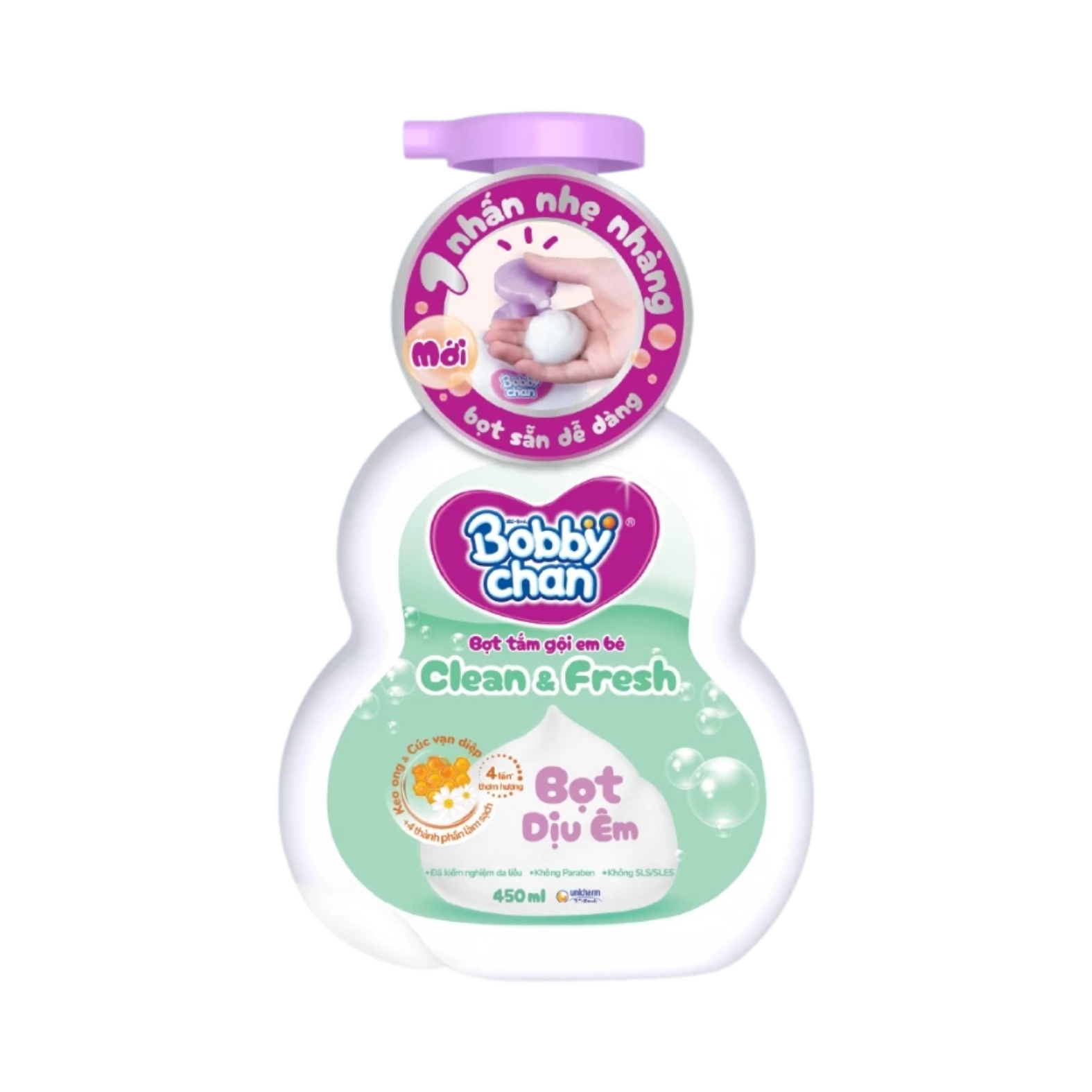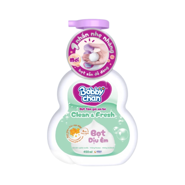 Bọt tắm gội em bé Bobby Chan Clean & Fresh 450ml (xanh lá)