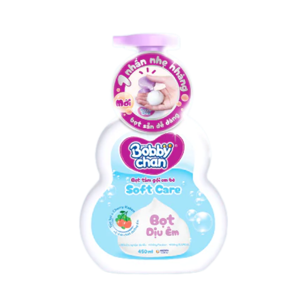 Bọt tắm gội em bé Bobby Chan Soft care 450ml (xanh dương)