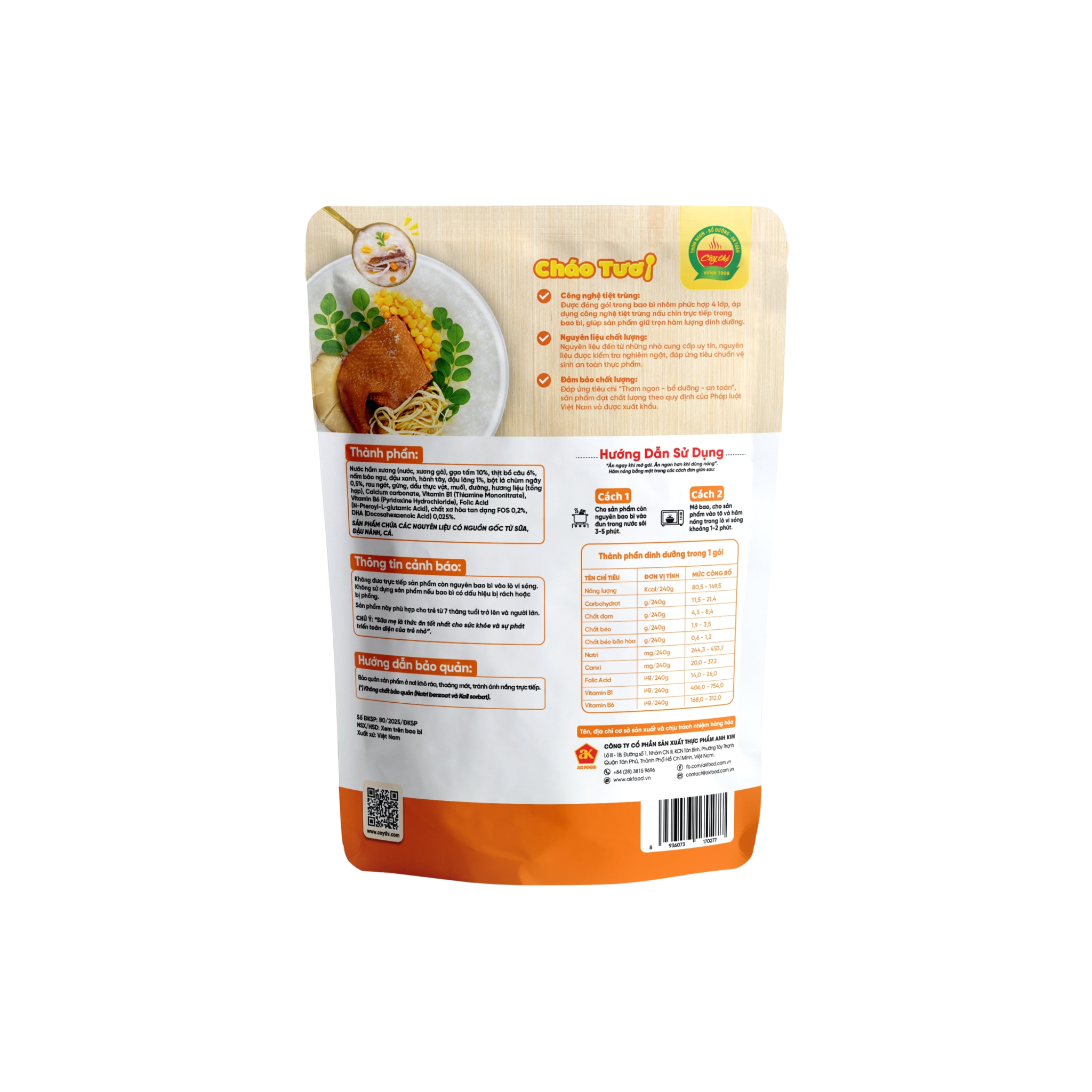 Cháo chín sẳn - Mở gói ăn ngay.