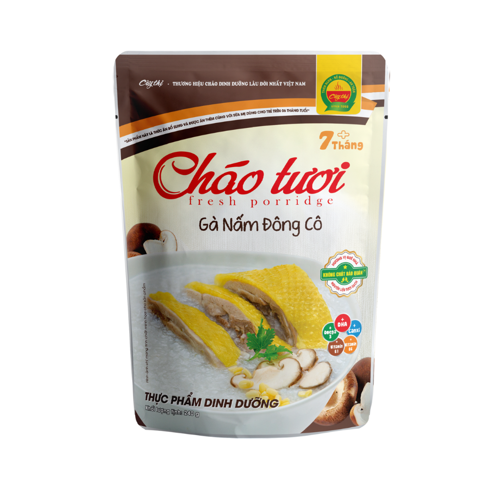 Cháo Tươi Gà Nấm Đông Cô 7m+