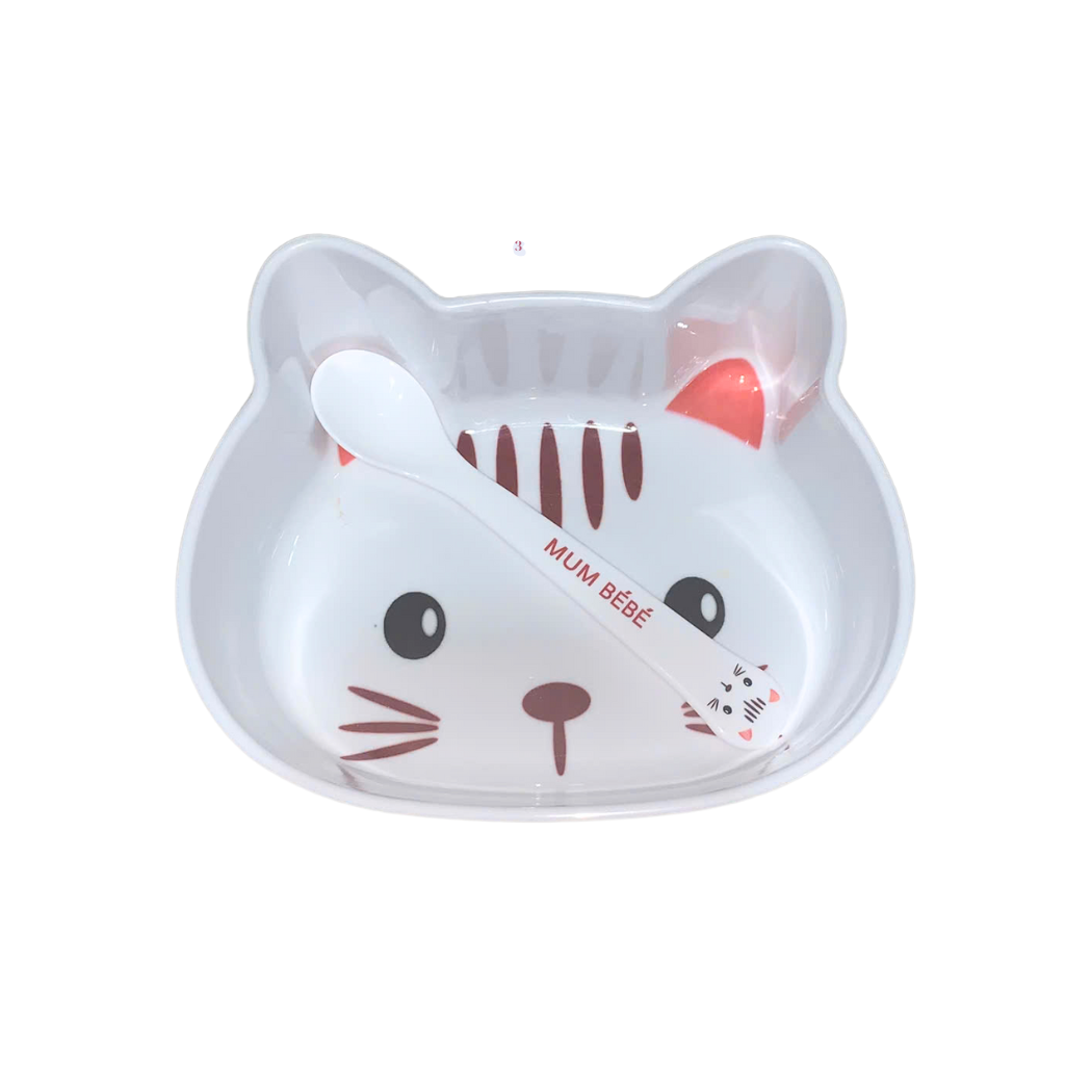 "Chén mèo thỏ kèm muỗng" là một bộ sản phẩm bao gồm một chiếc chén hình mèo và thỏ, có kèm theo muỗng. Sản phẩm này thường được sử dụng trong việc cho bé ăn dặm theo một cửa hàng bán lẻ.