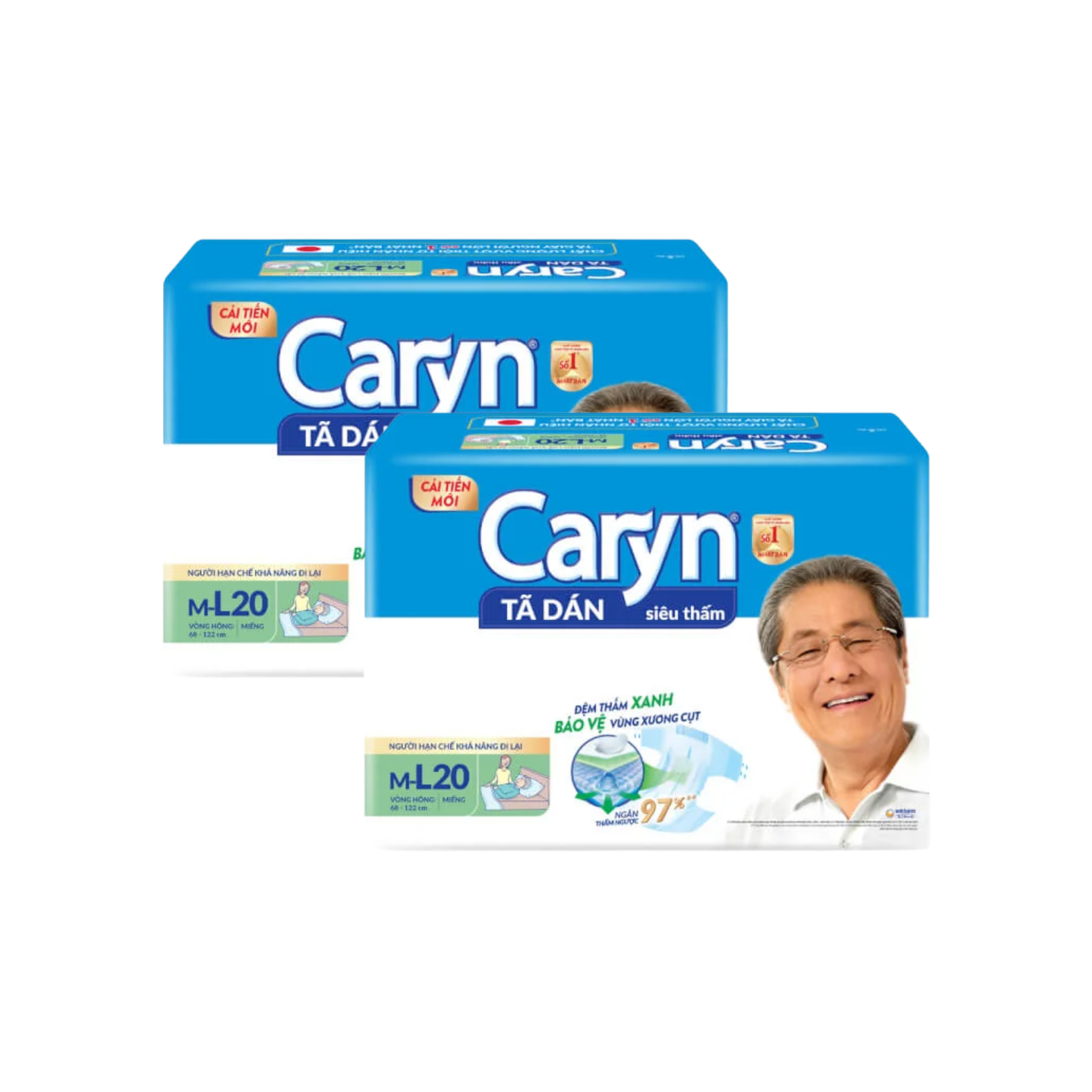Combo 2 gói Tã dán cho người lớn Caryn siêu thấm size ML 20 miếng