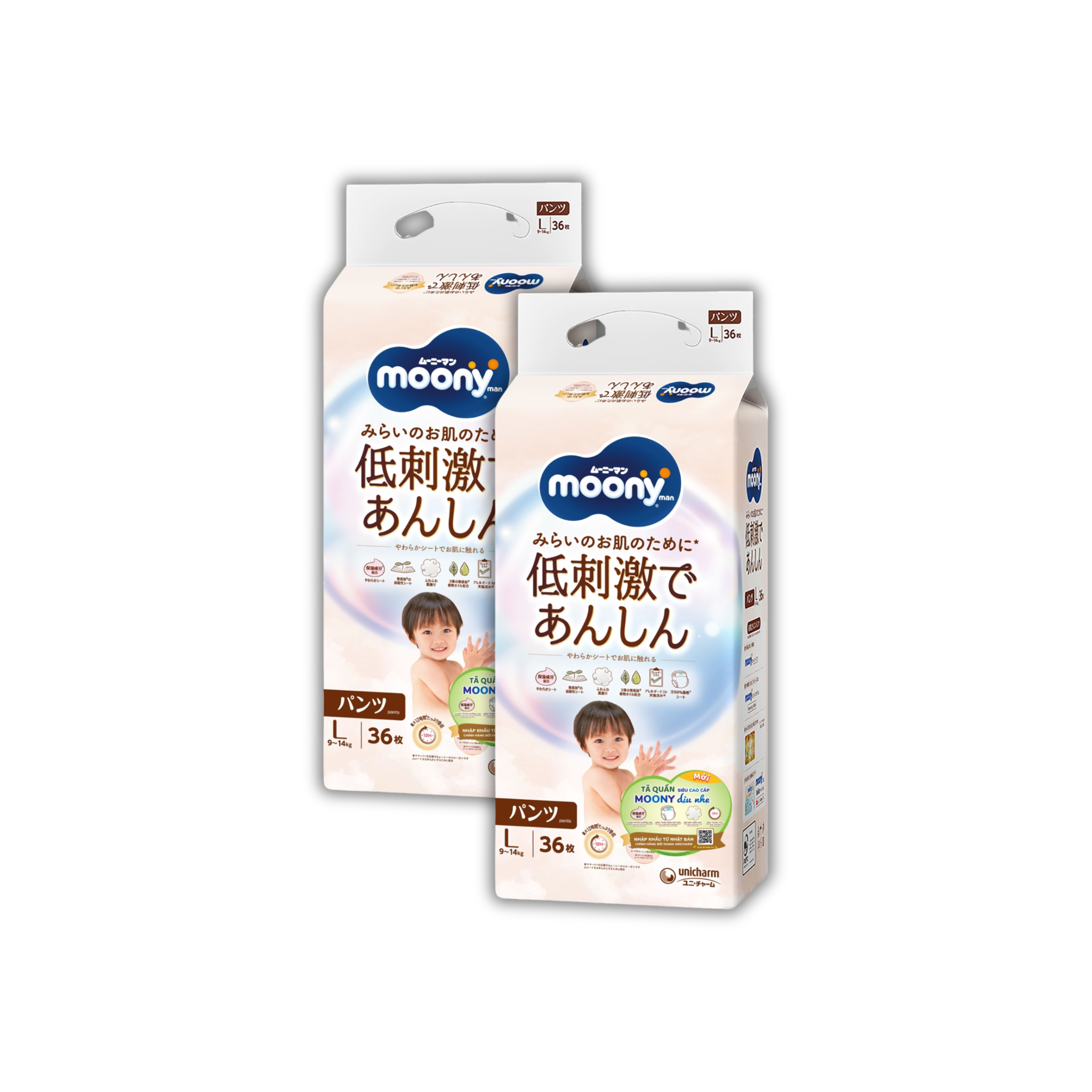 Moony là thương hiệu bỉm hàng đầu tại Nhật do Tập đoàn Unicharm sản xuất. Có mặt trên thị trường gần 40 năm, Moony đã giành được sự tin yêu của các bà mẹ Nhật Bản nhờ những tính năng vượt trội và công nghệ tân tiến với rất nhiều giải thưởng danh giá.
