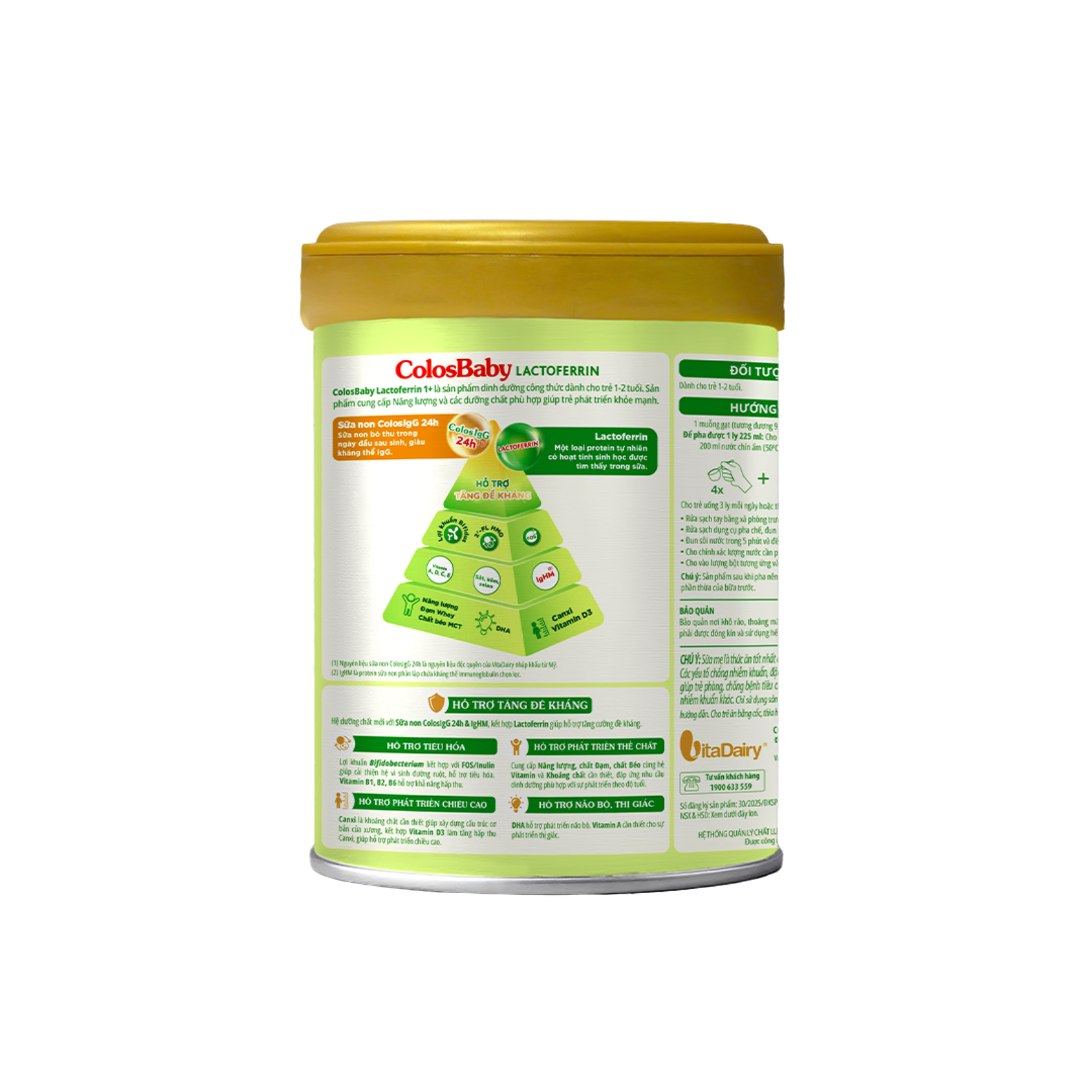 Giúp bé bổ sung kháng thể, tăng cường đề kháng. Sản phẩm chứa phức hợp miễn dịch thế hệ mới với 4 thành phần: Sữa non ColosIgG24h, IgHM, Lactoferrin và Syncbiotic