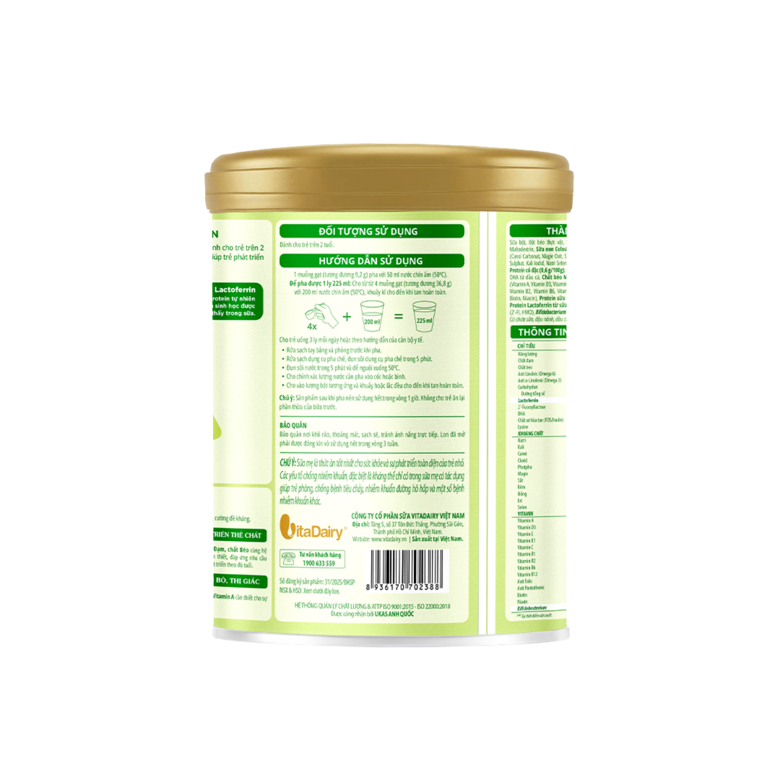DHA, ARA, Omega 3, Omega 6, Choline, Taurine hỗ trợ cấu trúc và chức năng não bộ. Vitamin A giúp tăng sức nhìn và tốt cho thị lực.