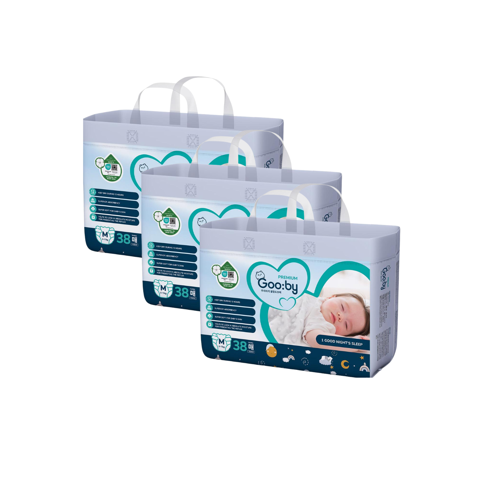 Combo 3 gói Tã dán Gooby Premium Đêm M-38 (6 - 11 kg)