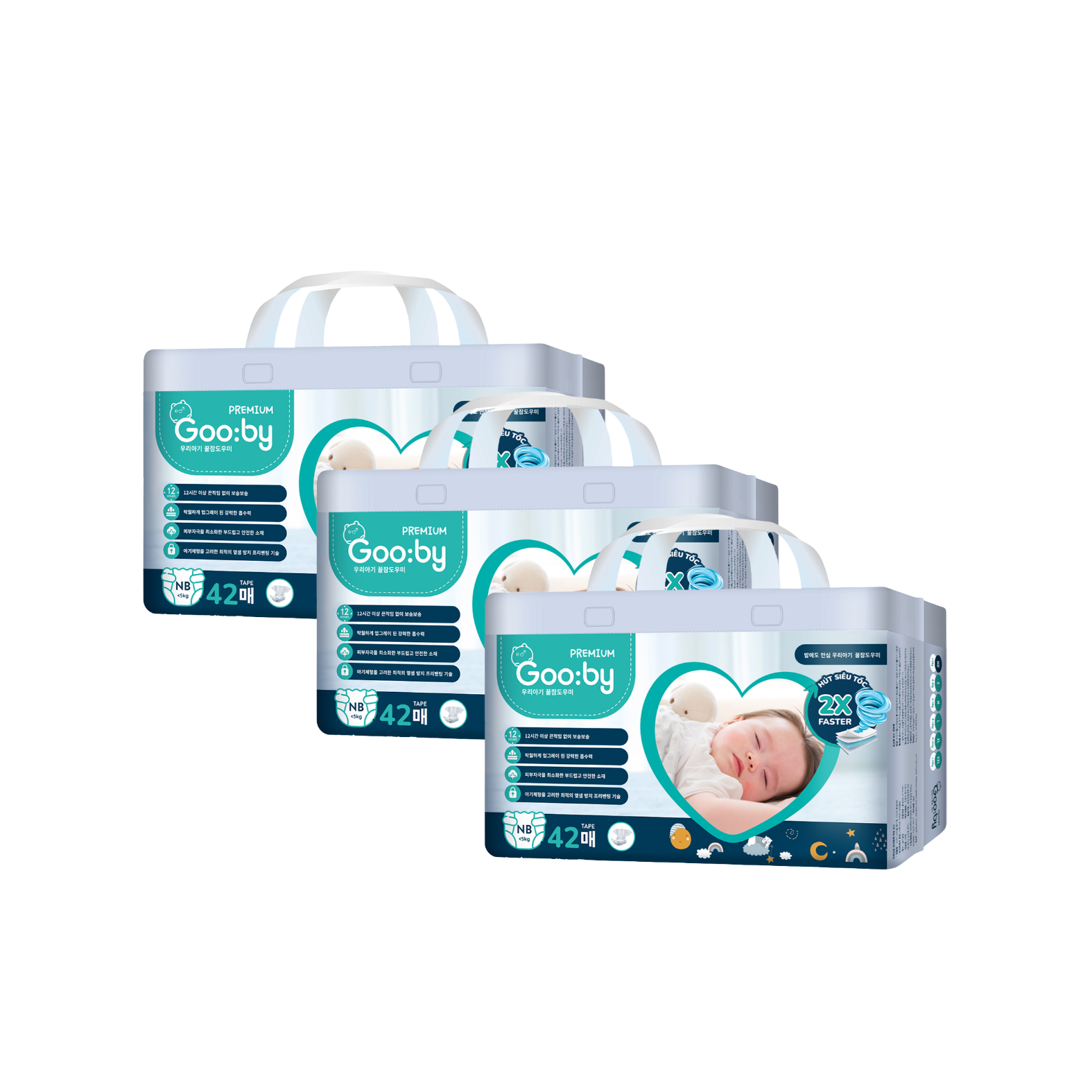 Combo 3 gói Tã dán Gooby Premium Đêm NB-42 (< 5 kg)