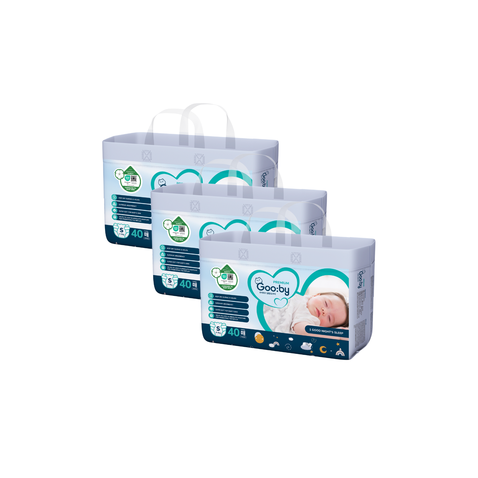 Combo 3 gói Tã dán Gooby Premium Đêm S-40 (4 - 8 kg)