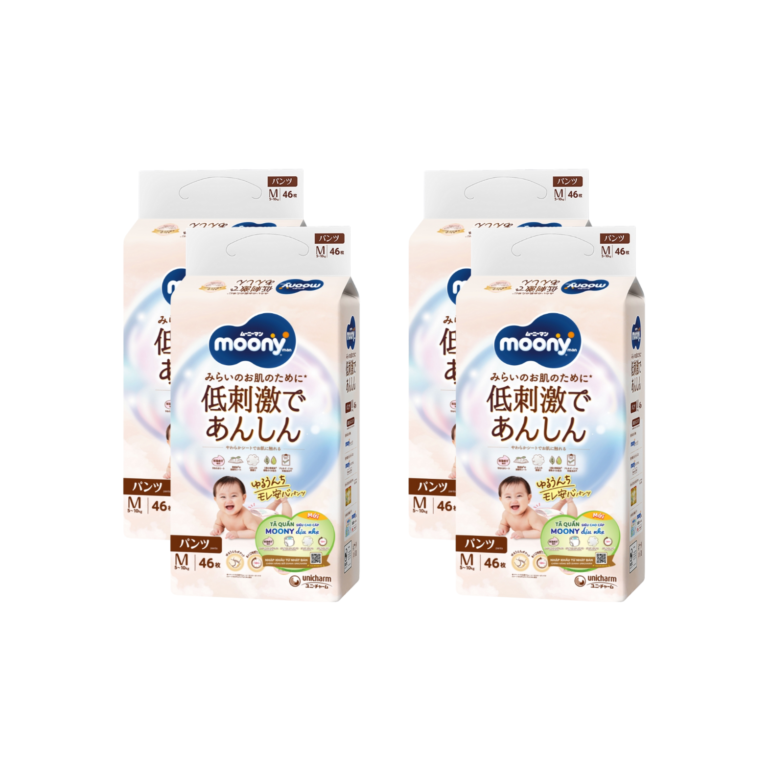 Combo 4 gói Tã Moony Natural Quần M-46 (5 - 10 kg, mẫu mới)