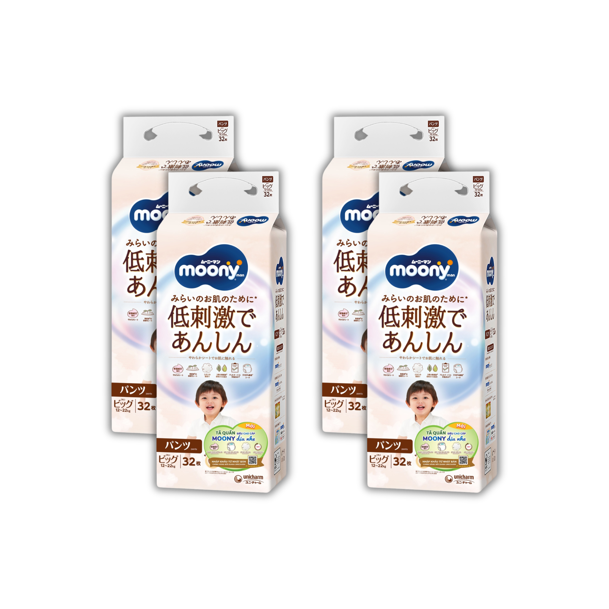 Combo 4 gói Tã Moony Natural Quần XL-32 (12 - 22 kg)
