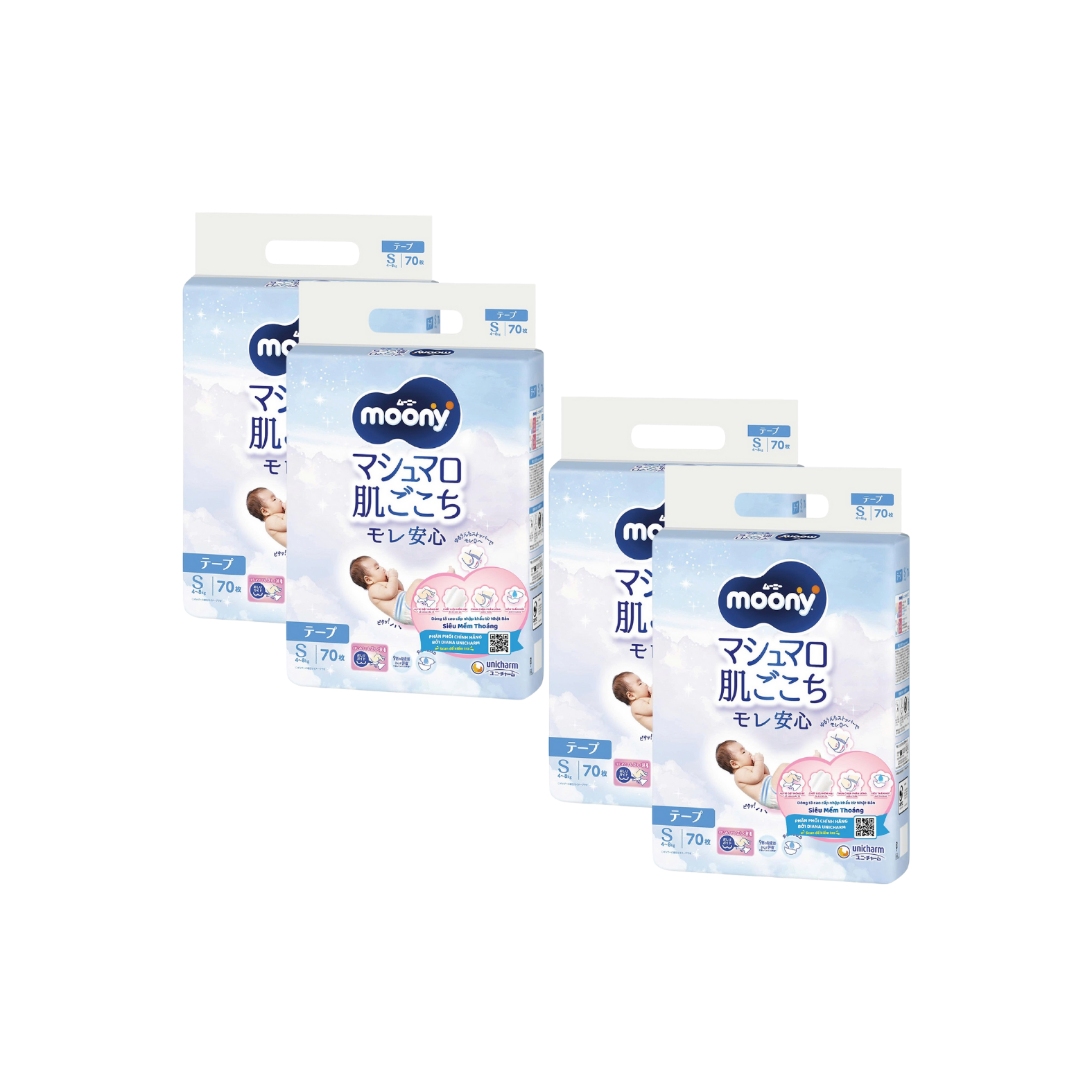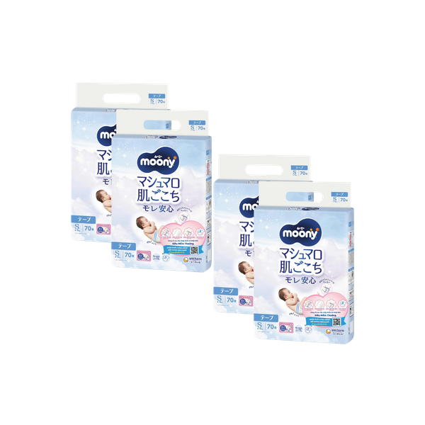 Combo 4 gói Tã Moony Xanh Dán S-70 (4 - 8 kg)