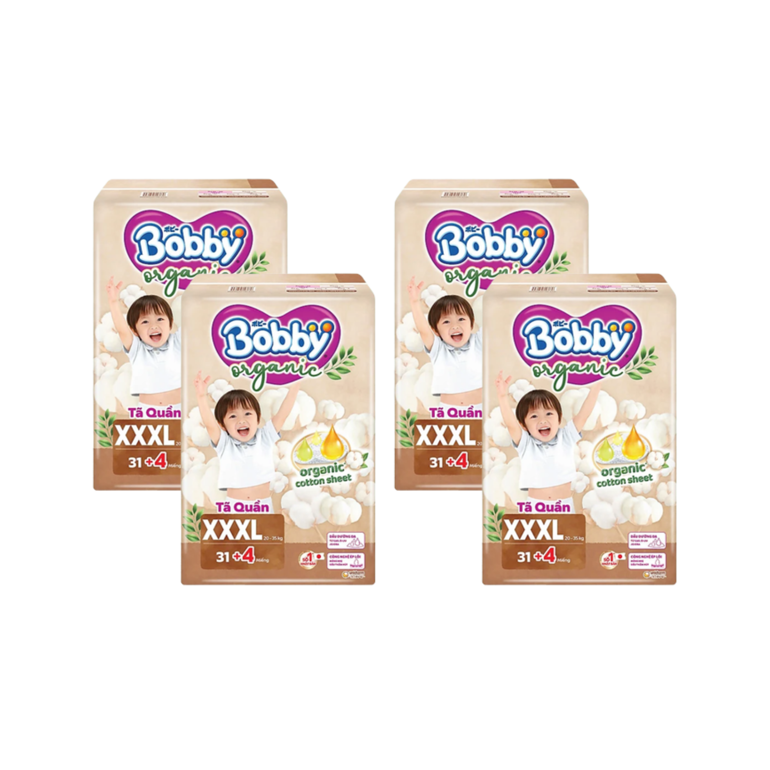 Combo 4 gói Tã quần Bobby Organic ngày 3XL-31+4 (6 - 11 kg)