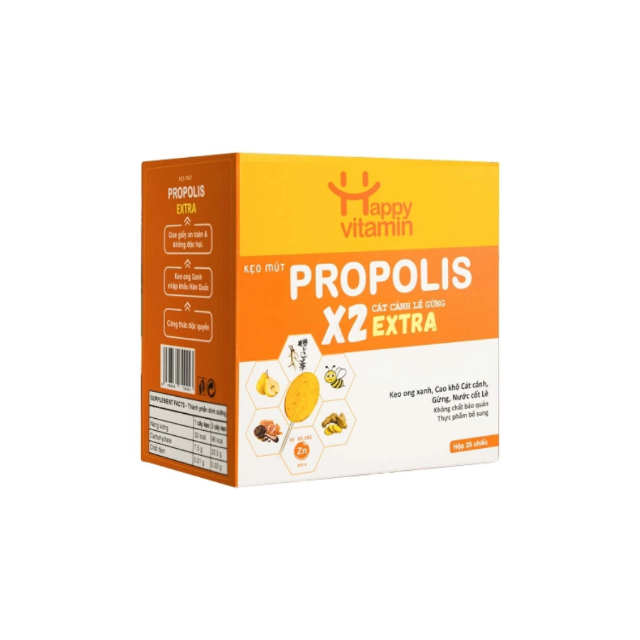 Kẹo mút Keo Ong EXTRA, Kẹo Ngậm Ho cho Bé - Happy Vitamin với thảo dược thiên nhiên hỗ trợ ngừa ho, long đờm, viêm họng
