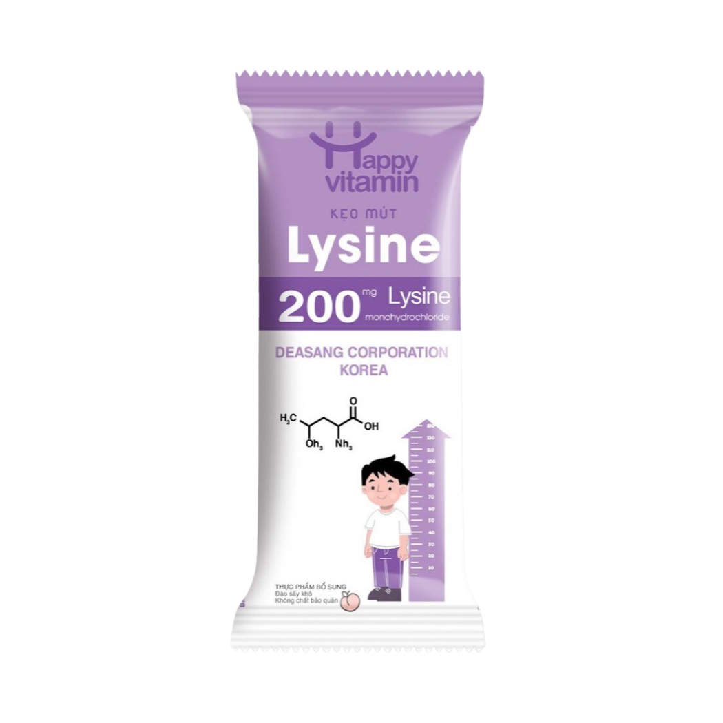 Thành phần: Lysine Monohydrochloride, đường, đào sấy khô, các vitamin và khoáng chất .