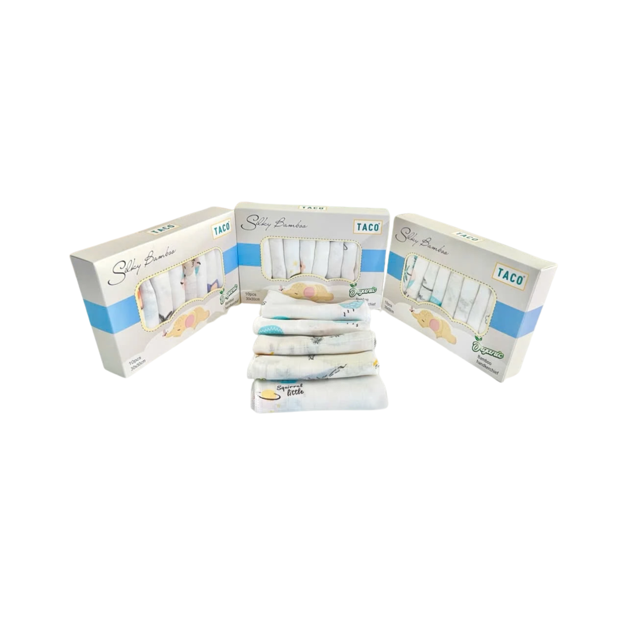 Set hộp 10 khăn sữa Taco đa năng sợi tre mềm mịn cao cấp cho bé