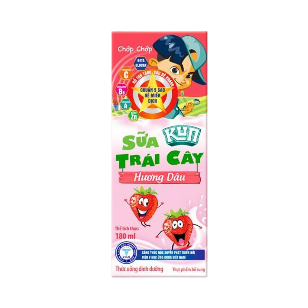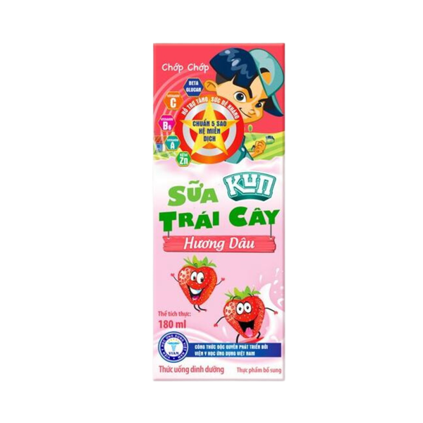 Sữa Kun Trái Cây hương dâu 180ml - Thức uống dinh dưỡng thơm ngon cho bé yêu