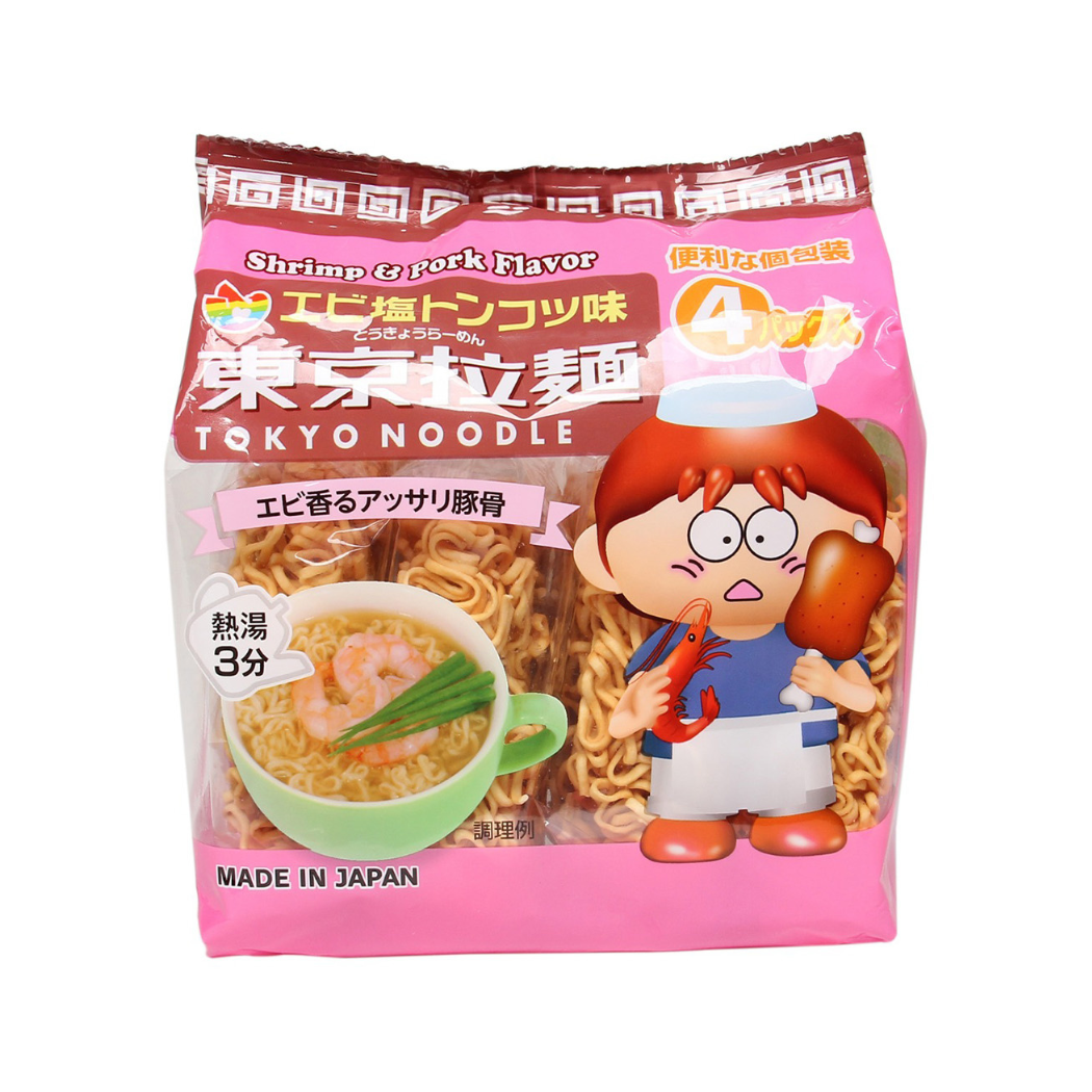 Mỳ ăn liền cho bé Tokyo Noodle vị Tôm & Thịt Heo với sợi mì dai mềm và hương thơm từ nước hầm heo muối cho bé một bữa ăn nhẹ thơm ngon.