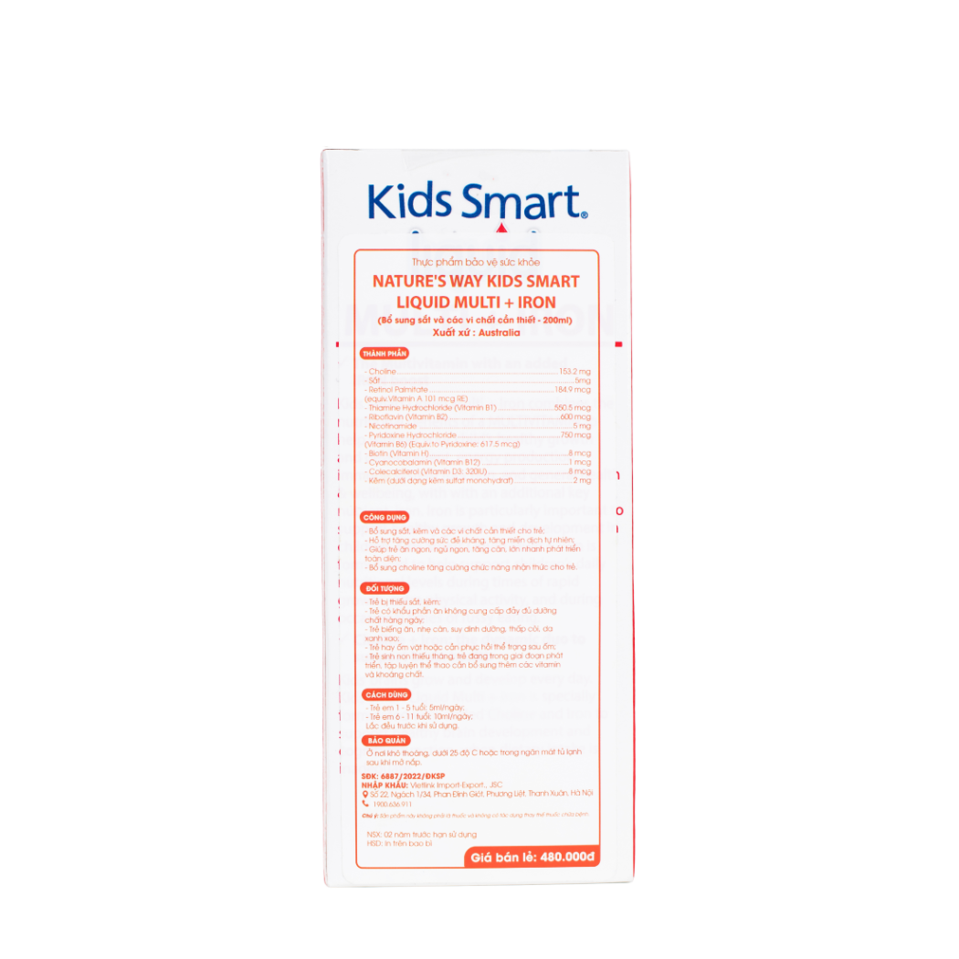 Nature's Way Kids Smart Multi Iron Liquid - Vitamin tổng hợp và sắt 200ml