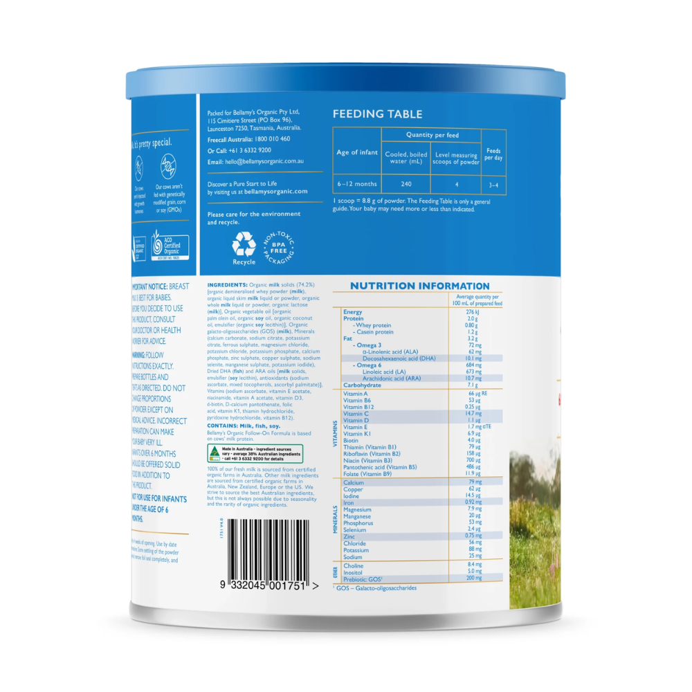 Sữa Bellamy's Organic đạm A1 số 2 (900g) cho bé từ 6-12 tháng