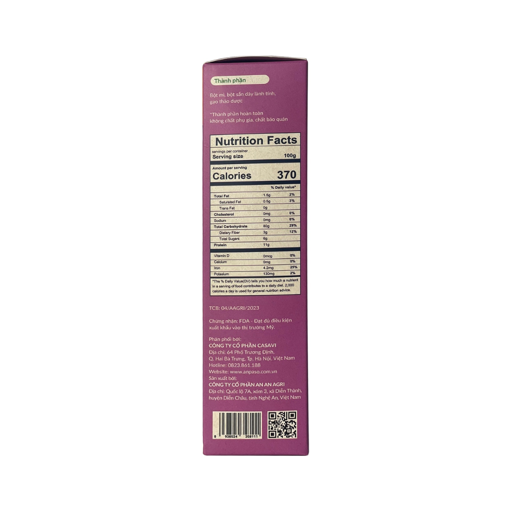 Thành phần: Bột mì, bột sắn dây lành tính, gạo thảo dược