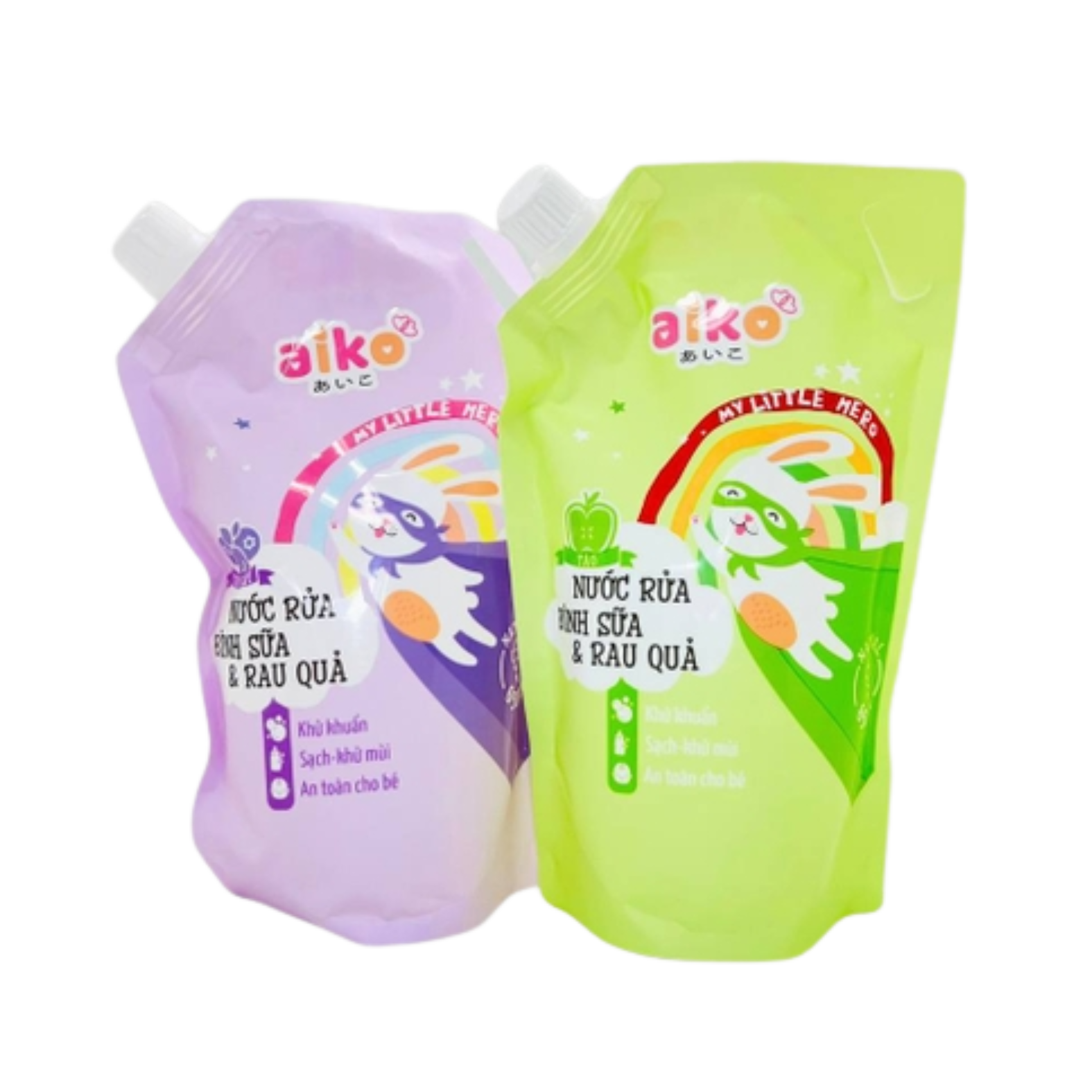 Nước rửa bình sữa Aiko tạo bọt 650ml hương táo và trái cây (combo 2 túi)
