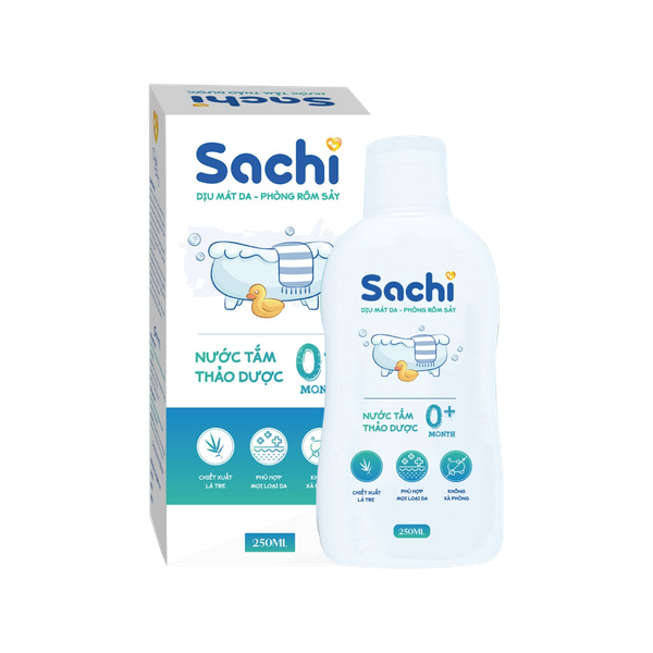 - Khi bị rôm sảy, mụn nhọt có thể thoa trực tiếp nước tắm Sachi lên vùng da cần chăm sóc, đợi khoảng 1 -2 phút rồi tắm lại trong hỗn hợp nước tắm đã pha.