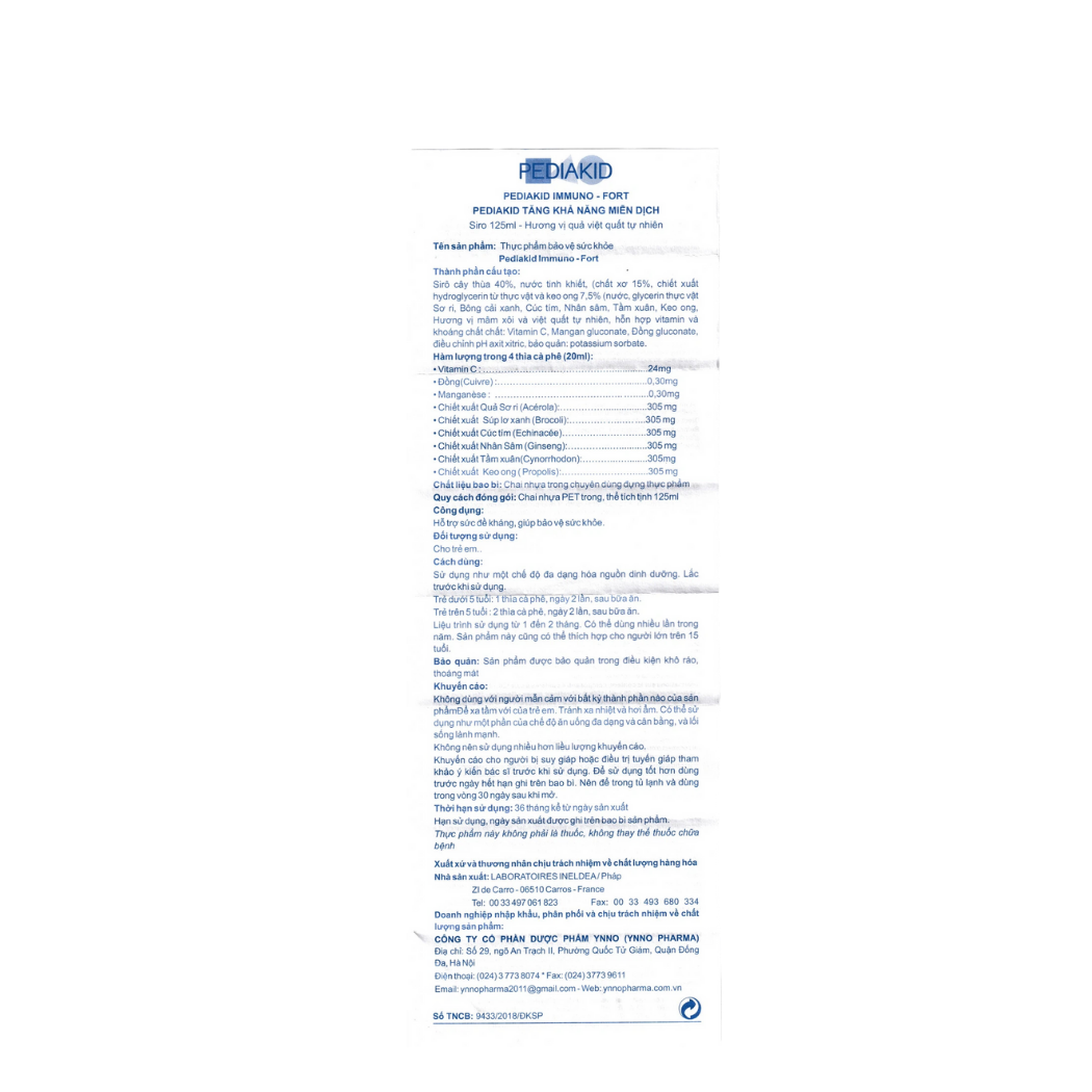 Thành phần của Siro Pediakid Immuno-Fort
