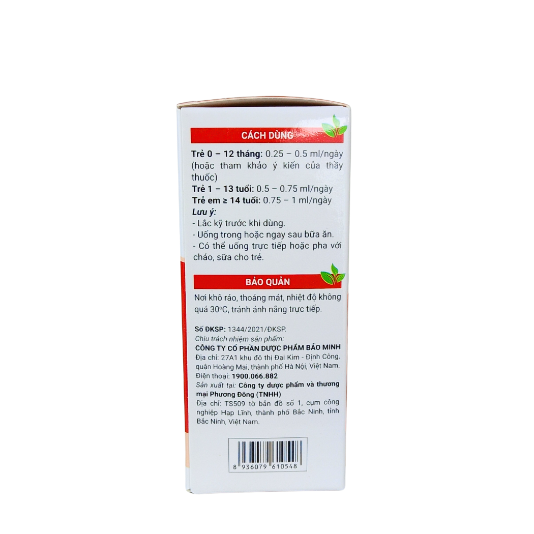 - Trẻ 0 - 12 tháng: dùng 0.25 - 0.5 ml/ngày hoặc sử dụng theo sự hướng dẫn của bác sĩ.