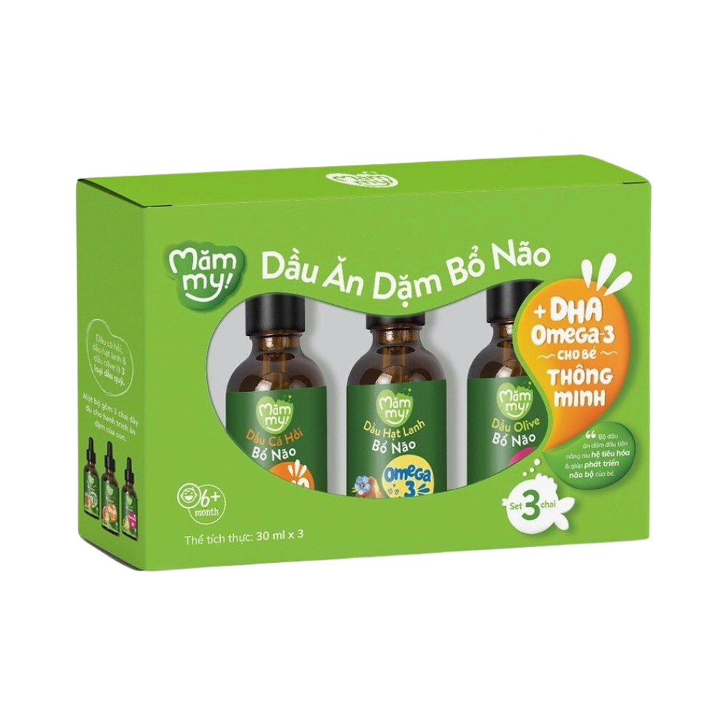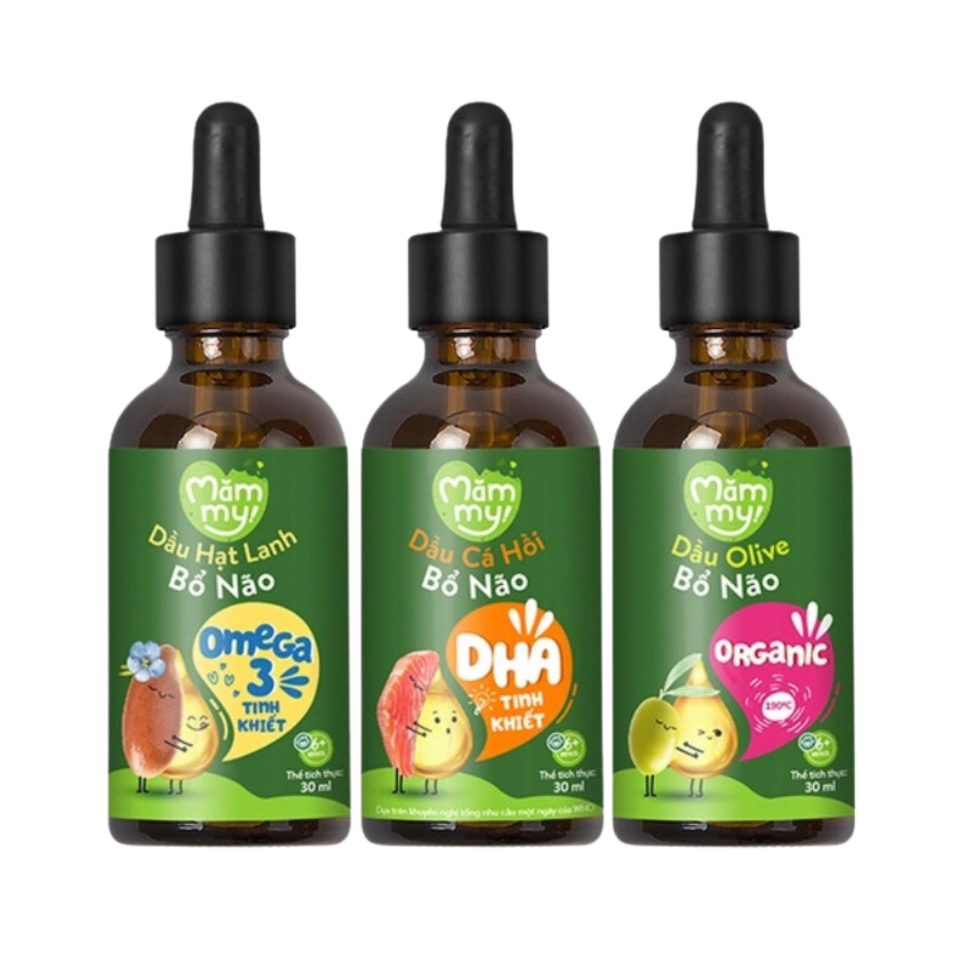 Set 3 chai dầu Mămmy (cá hồi, hạt lanh, olive)