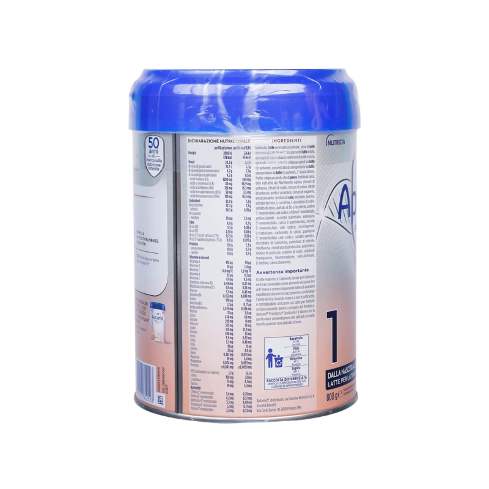 Các thành phần chính có chứa trong sữa bột Aptamil Profutura Duobiotik số 1 bao gồm: Đường Lactose (từ sữa), sữa tách béo, sản phẩm whey (từ sữa), Chất béo sữa (12%), dầu thực vật (dầu hạt cải, dầu hướng dương, dầu dừa) (12%), galactooligosaccharides (từ sữa), whey protein (từ sữa), 2’-Fucosyllactose, Fructooligosaccharide, dầu cá, Canxi Orthophosphate, dầu từ Mortierella Alpina, Kali clorid, natri citrat, choline clorid, Kali citrat, Vitamin C, Magie clorid, chất nhũ hóa (lecithin đậu nành), Inositol, Taurine, Sắt (II) sulfat, L-carnitine, kẽm sunfat, Vitamin E, Nucleotide (muối natri của cytidine, uridine, adenosine, inosine, guanosine 5-monophosphate), Chất chống oxy hóa, Acid Pantothenic, L-Tryptophan, canxi cacbonat, đồng sunfat, Vitamin B1, Vitamin A, Vitamin B2, Vitamin B6, acid folic, kali iodid, Natri selenide, Mangan (II) sulfat, Vitamin K, Vitamin D, Biotin, Vitamin B12.
