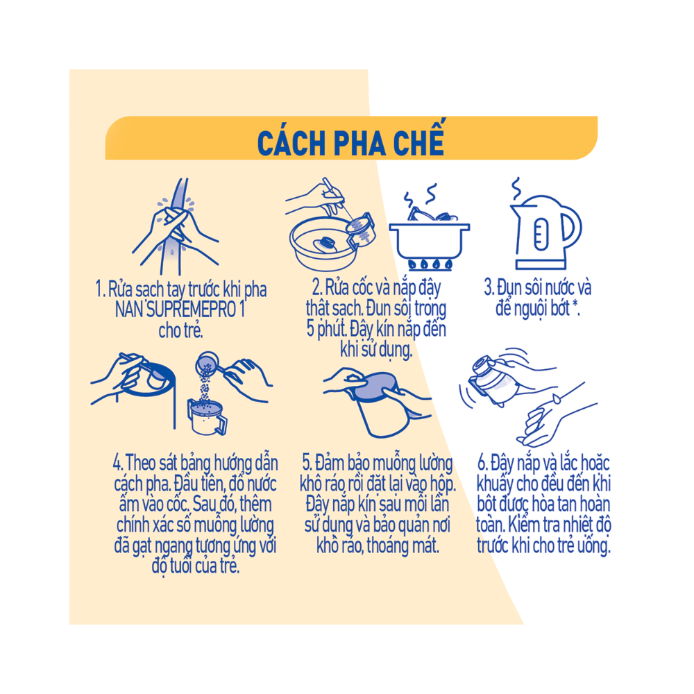 - Bước 1: Rửa sạch tay và vệ sinh dụng cụ pha sữa (cốc, muỗng, bình).