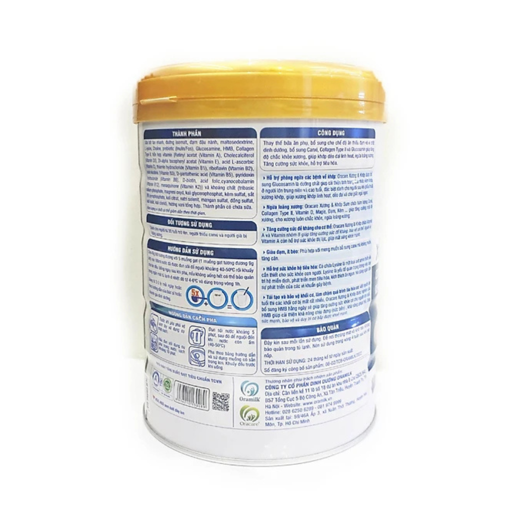 Oracare xương khớp 900g là sản phẩm sữa dinh dưỡng dạng bột, được thiết kế chuyên biệt nhằm bổ sung canxi và các vi chất hỗ trợ sức khỏe xương khớp. Sản phẩm thuộc thương hiệu Oramilk, được sản xuất tại Việt Nam, phù hợp cho người lớn tuổi, người có nguy cơ loãng xương, người chơi thể thao hoặc những ai cần hỗ trợ tăng cường sức khỏe xương khớp.