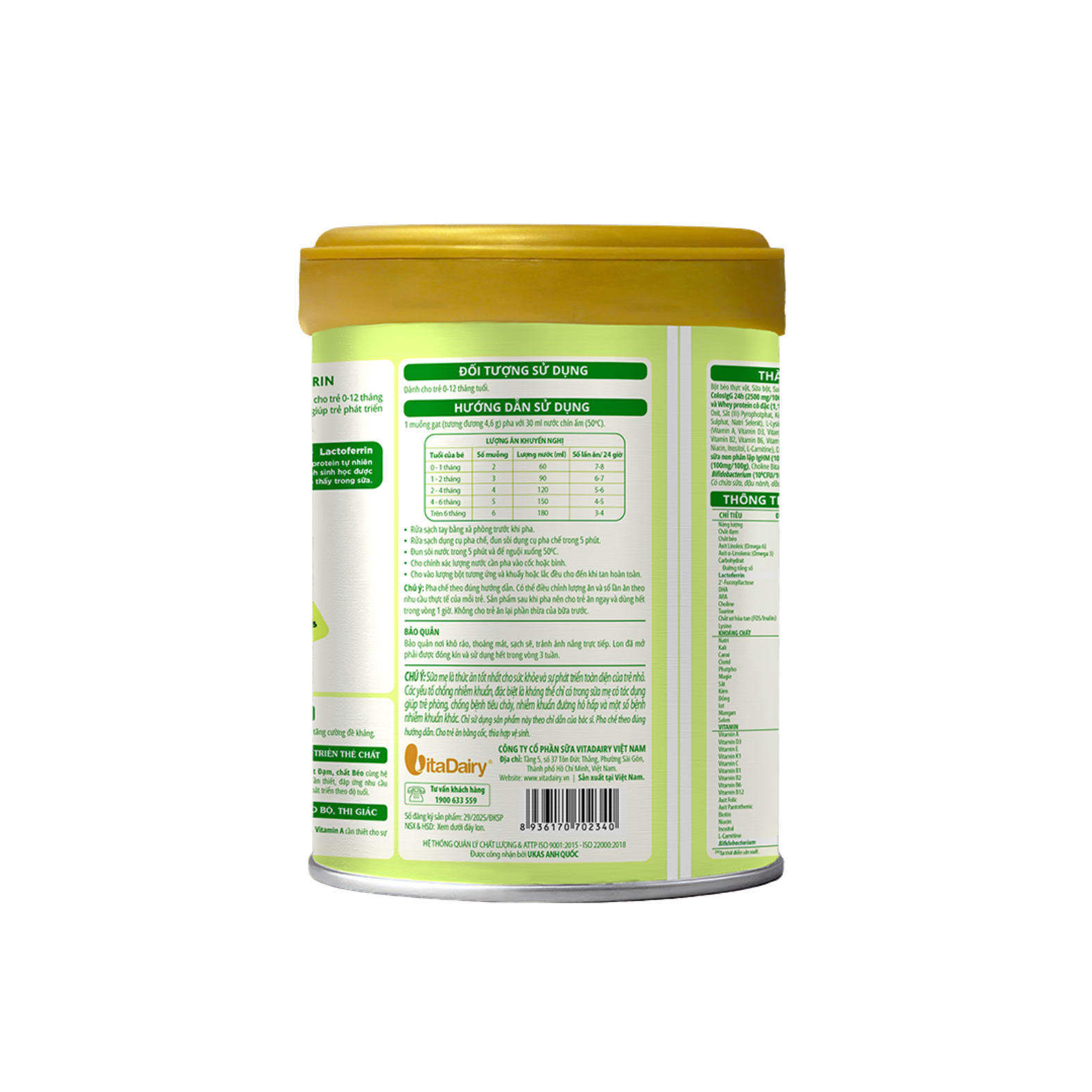 DHA, ARA, Omega 3, Omega 6, Choline, Taurine hỗ trợ cấu trúc và chức năng não bộ. Vitamin A giúp tăng sức nhìn và tốt cho thị lực.