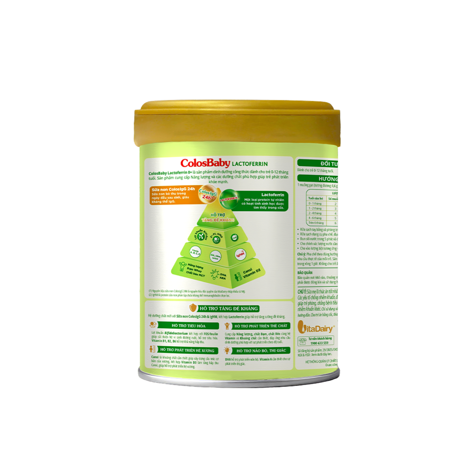 Giúp bé bổ sung kháng thể, tăng cường đề kháng. Sản phẩm chứa phức hợp miễn dịch thế hệ mới với 4 thành phần: Sữa non ColosIgG24h, IgHM, Lactoferrin và Syncbiotic