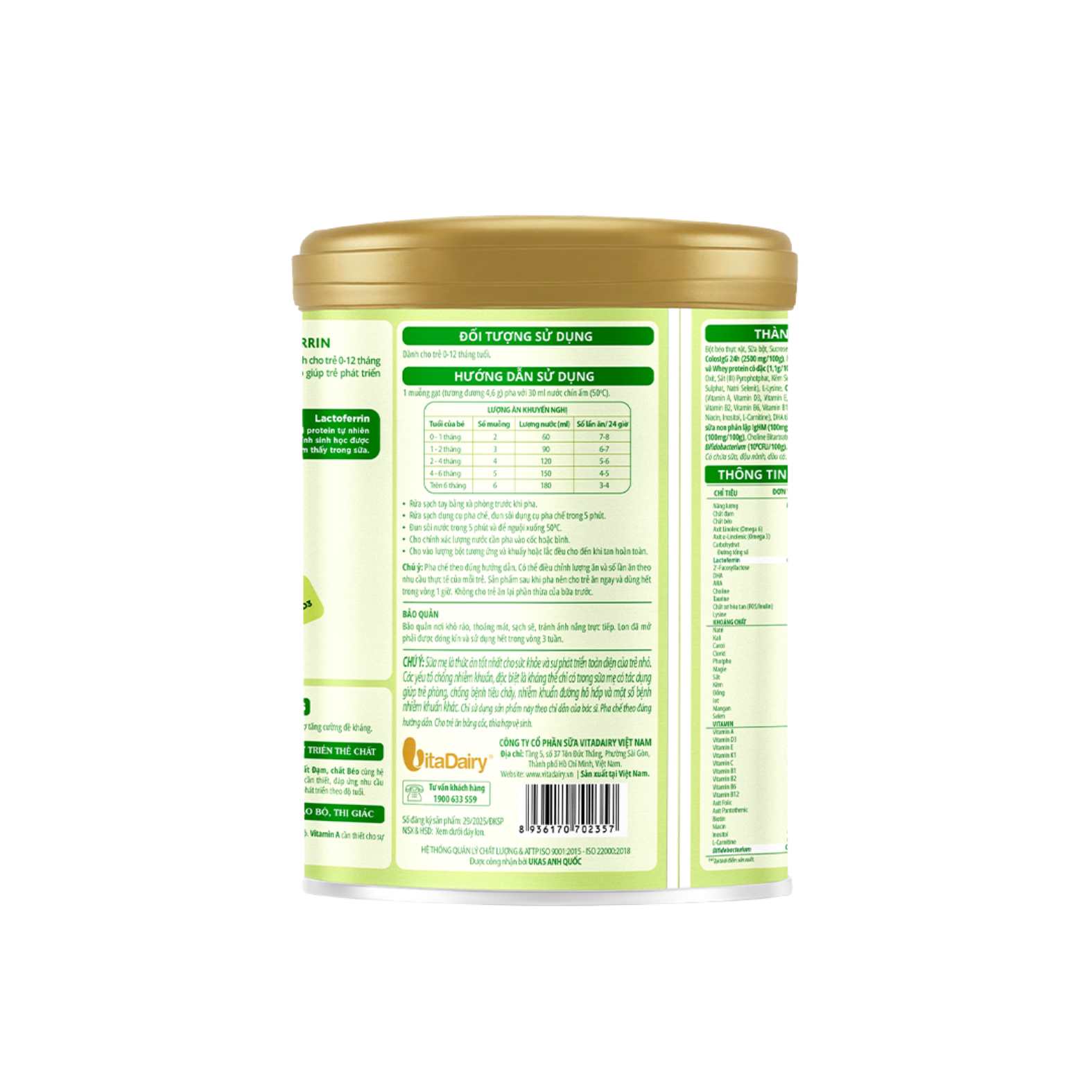DHA, ARA, Omega 3, Omega 6, Choline, Taurine hỗ trợ cấu trúc và chức năng não bộ. Vitamin A giúp tăng sức nhìn và tốt cho thị lực.