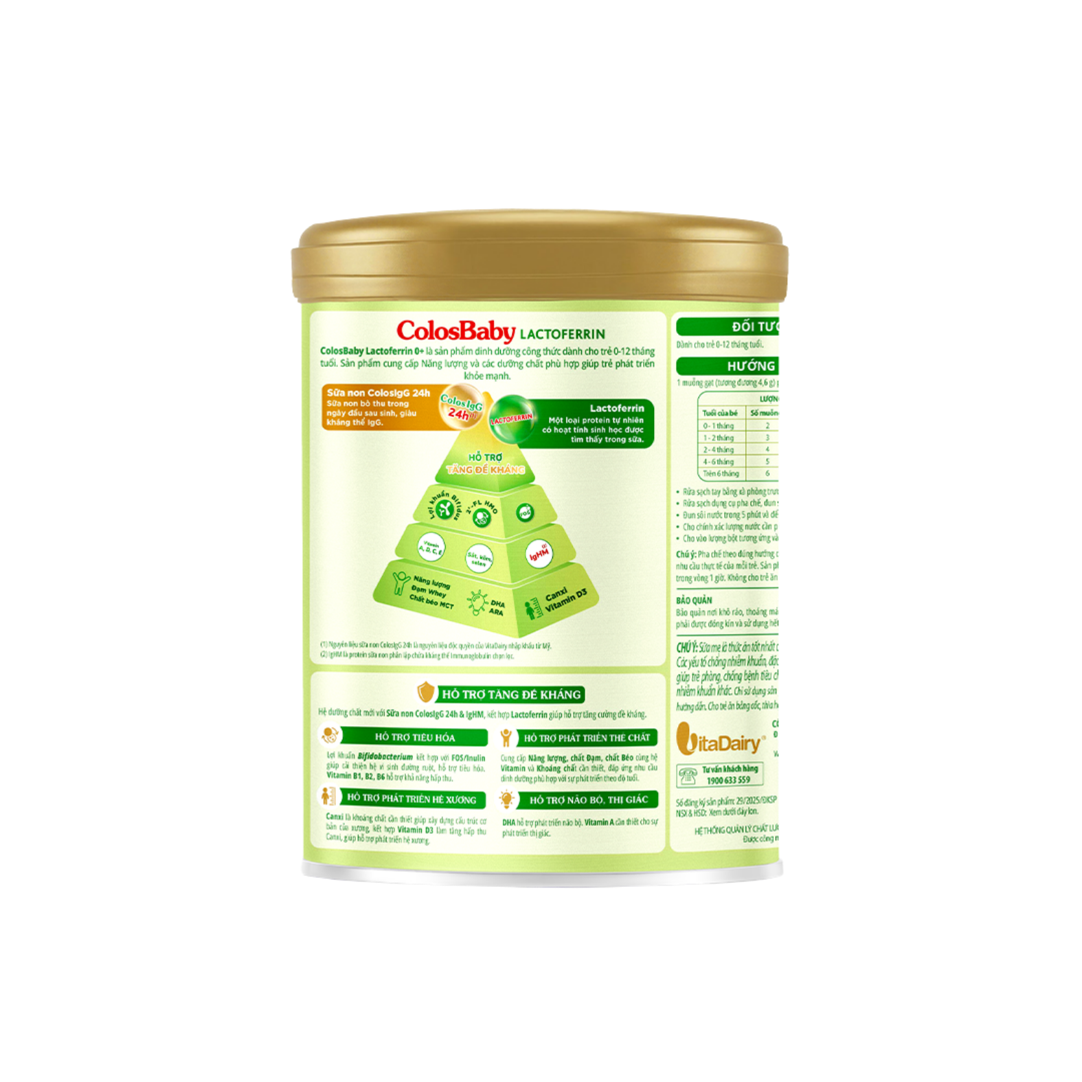 Giúp bé bổ sung kháng thể, tăng cường đề kháng. Sản phẩm chứa phức hợp miễn dịch thế hệ mới với 4 thành phần: Sữa non ColosIgG24h, IgHM, Lactoferrin và Syncbiotic