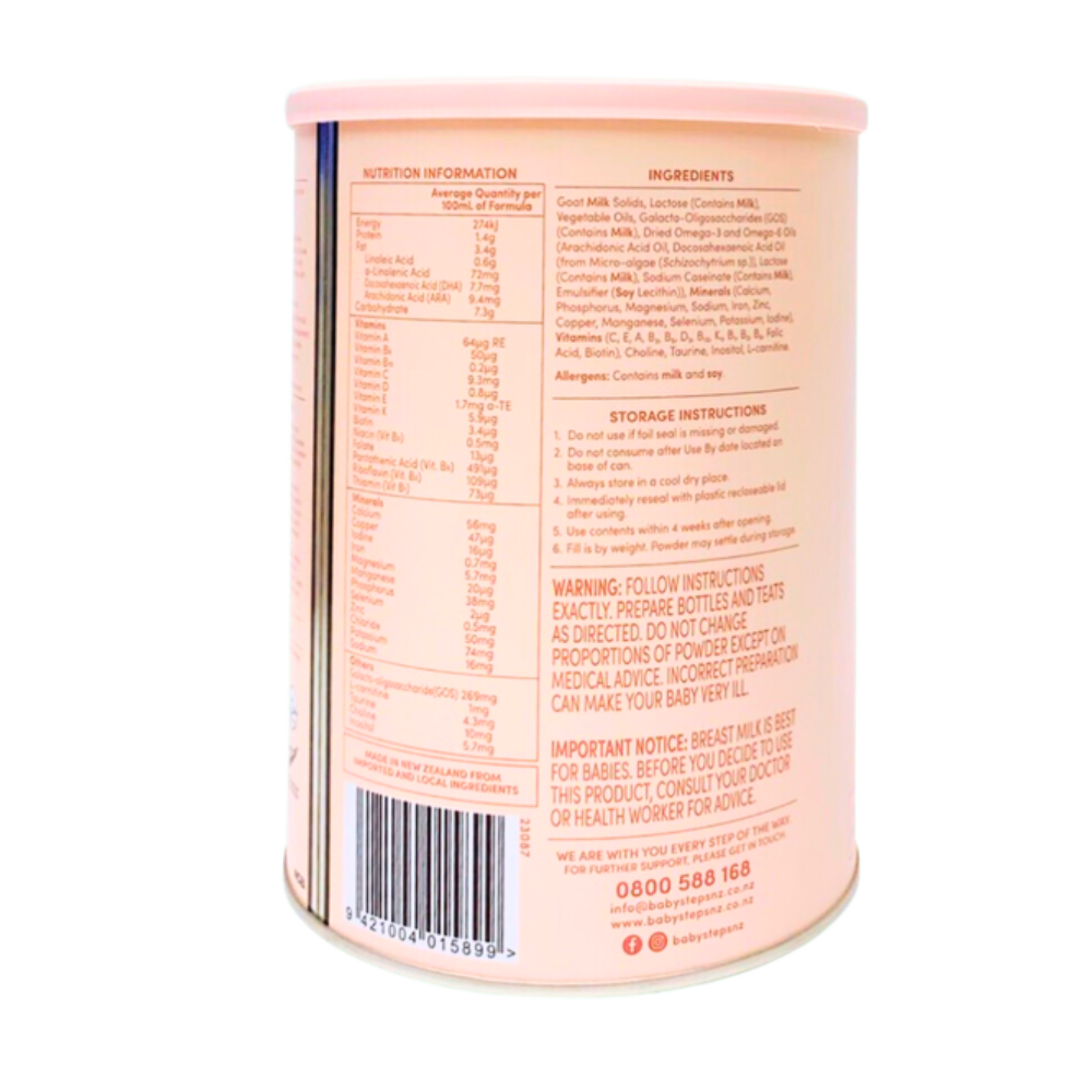 Sản phẩm được sản xuất từ nguồn sữa dê tự nhiên, giàu axit béo, protein và oligosaccharide, giúp bé tiêu hóa dễ dàng và phát triển khỏe mạnh. Baby Steps Goat Milk Infant Formula có thể sử dụng từ khi sinh ra và là một giải pháp thay thế hoàn hảo cho sữa mẹ, đáp ứng nhu cầu dinh dưỡng quan trọng của bé yêu.