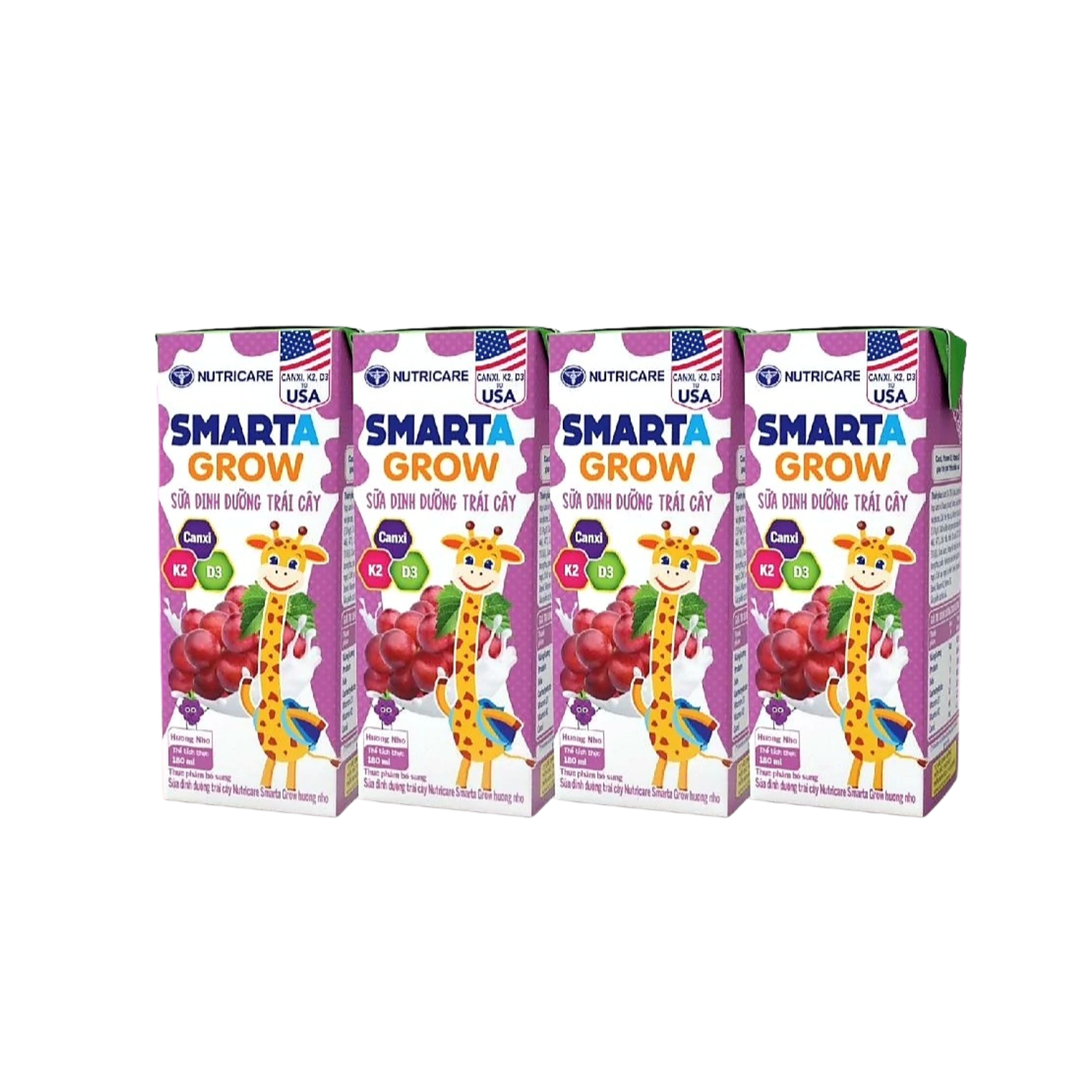 Sữa dinh dưỡng trái cây Nutricare Smarta Grow hương nho 180ml (lốc 4 hộp)