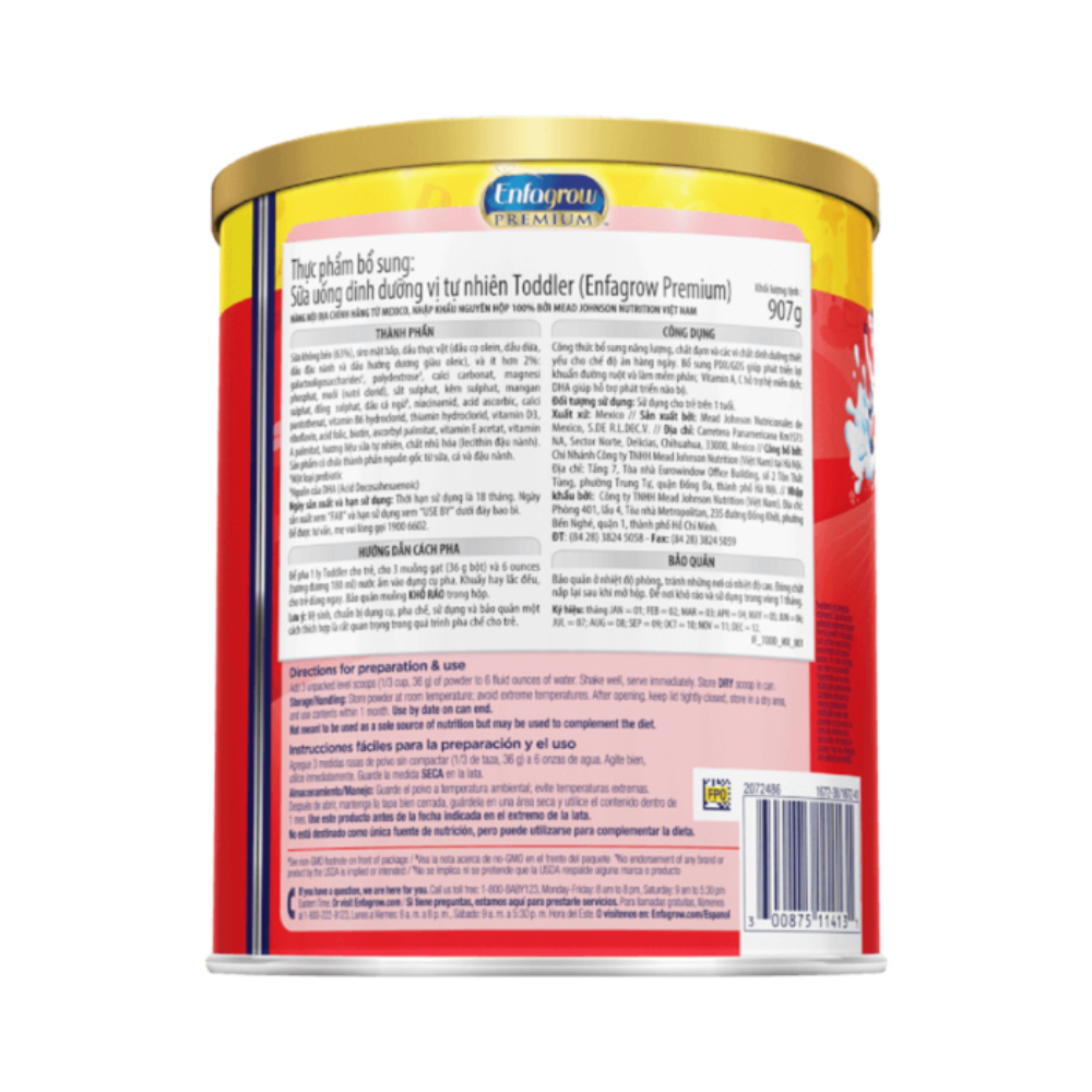 Sữa Enfagrow Premium Toddler NĐ Mỹ 907g là sự lựa chọn tuyệt vời cho bé từ 1 tuổi trở lên. Với công thức chứa DHA, chất xơ PDF/GOS và 22 dưỡng chất thiết yếu, sản phẩm không chỉ giúp bé phát triển toàn diện mà còn đảm bảo an toàn tuyệt đối cho sức khỏe của bé.