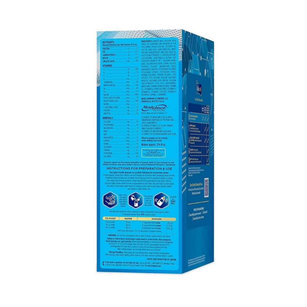 Sữa Enfamil Enspire Optimum phù hợp với trẻ từ 0-12 tháng tuổi, giúp bé phát triển toàn diện trong giai đoạn đầu đời. Sản phẩm có hương vị tự nhiên, dễ uống, giống sữa mẹ, giúp bé thích nghi và phát triển tốt.