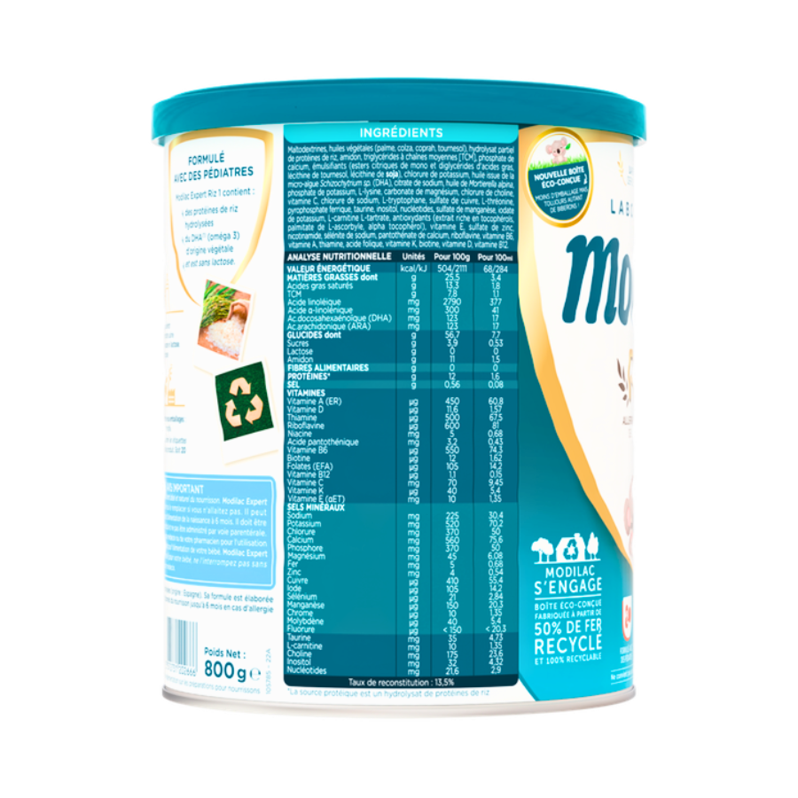 Modilac Expert Riz là sữa công thức chuyên biệt dành cho trẻ từ 0 đến 6 tháng tuổi, gặp tình trạng dị ứng đạm sữa bò và bất dung nạp Lactose. Sản phẩm được phát triển bởi tập đoàn Savencia, đứng đầu về sản xuất bơ sữa tại Pháp và nằm trong top 5 toàn cầu. Modilac Expert Riz cam kết mang đến nguồn dinh dưỡng tối ưu với công thức không chứa Lactose và sử dụng đạm gạo thủy phân, phù hợp với hệ tiêu hóa nhạy cảm của trẻ. Với quy trình sản xuất hiện đại và tiêu chuẩn nghiêm ngặt, sản phẩm đảm bảo cung cấp dinh dưỡng an toàn, hỗ trợ sự phát triển toàn diện cho bé yêu.