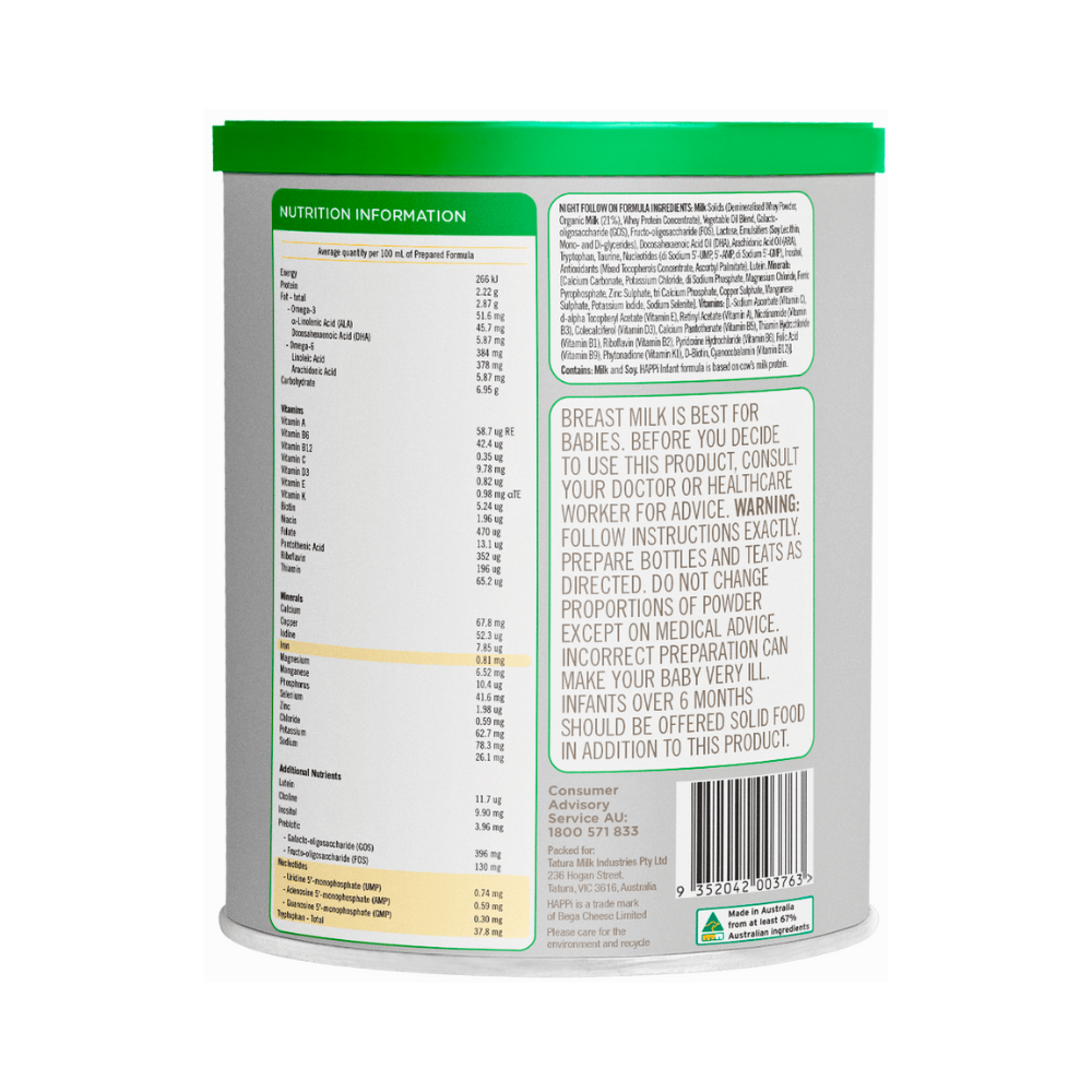 - Sữa Happi Night số 2 đến từ tập đoàn Bega Group, với nguồn nguyên liệu sữa sạch từ các trang trại bò sữa organic ở Úc.